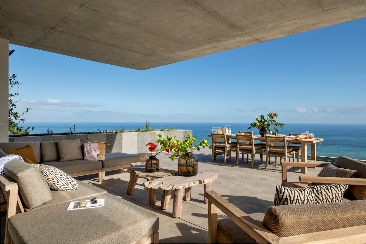 Ocean-View Designer Villa for the Modern Traveller Discover an unmatched seaside retreat with expansive views, space and light. This newly completed luxurious home leaves nothing to be desired: make it your idyllic escape. Powered by solar energy with extensive backup for loadshedding, it also has a state-of-the-art water system, ensuring uninterrupted enjoyment. Let our attentive team make your stay truly unforgettable! Extras: Top security, daily housekeeping, child friendly, elevator.
