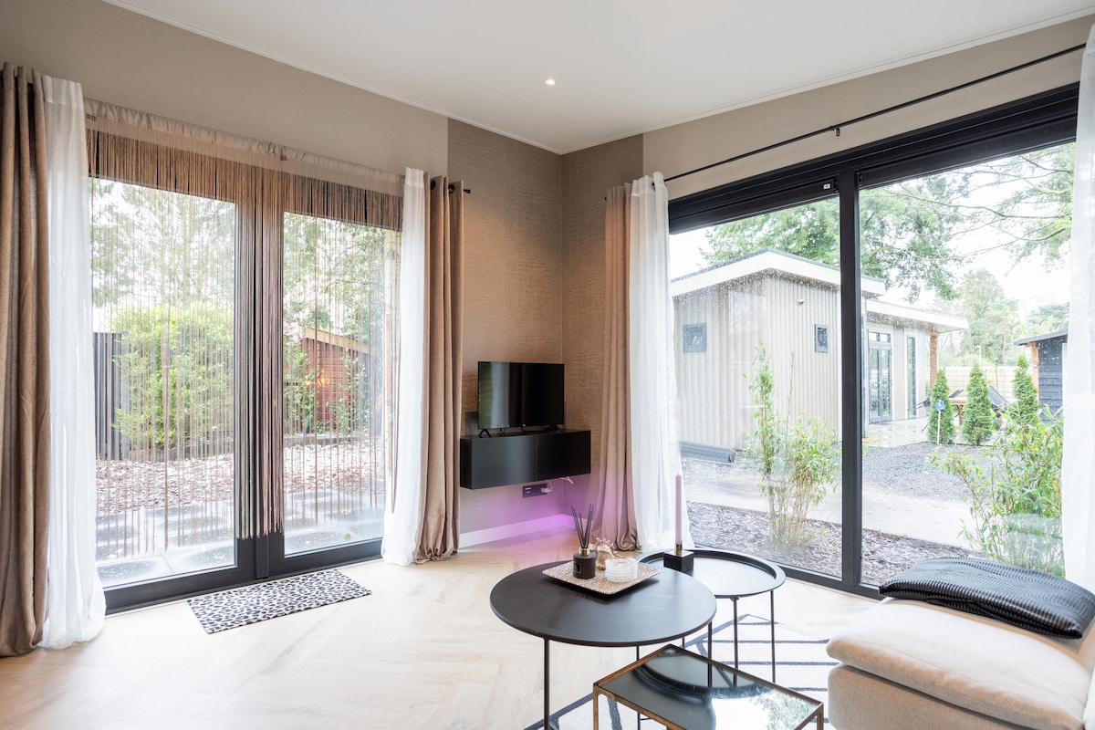 ¡Disfruta de la tranquilidad de la querida Veluwe, en nuestro lujoso diseño Boutique Lodge Veluwe! Rodeado por el hermoso Speulder & Sprielderbos para pasear o andar en bicicleta, ir de compras en los encantadores pueblos cercanos, disfrutar de la restauración local o relajarse en la sauna Putten; tú decides. Boutique Lodge Veluwe se encuentra en un pequeño y tranquilo parque recreativo en medio de los bosques entre Garderen y Putten. El Lodge está situado en un callejón sin salida, por lo que tienes total privacidad.