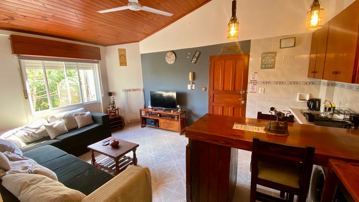 Nuestro departamento El Portal está ubicado en el barrio de Villa Urquiza, en Posadas, Misiones, a pocas cuadras de la Costanera, del Hospital Madariaga del Deportivo Finito German y muy cerca del centro de la ciudad. Con acceso independiente, en planta alta, con dormitorio con aire acondicionado, living comedor con cocina y balcón terraza para disfrutar momentos de tranquilidad. Además, podes relajarte en el cómodo sofá y descansar. ¡Reserva ahora y vive una experiencia única en Posadas!