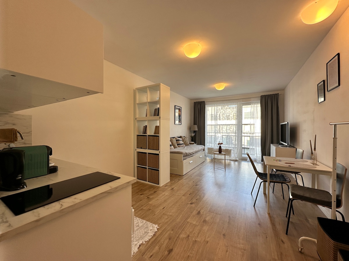 🌿 Enjoy peace away from the city buzz, being just 10 minutes from Bratislava’s center by car or public transport. 🚆 Right next you’ll find a train station with hour long direct connections to Vienna. Restaurants, shops, and the Vienna Gate shopping center are all there. 🚗 Easy garage parking, quick highway access, and a green inner courtyard make this apartment the perfect choice – even for your dog. Upon request, we can cater to the little ones, from the crib, small bath and the chair!
