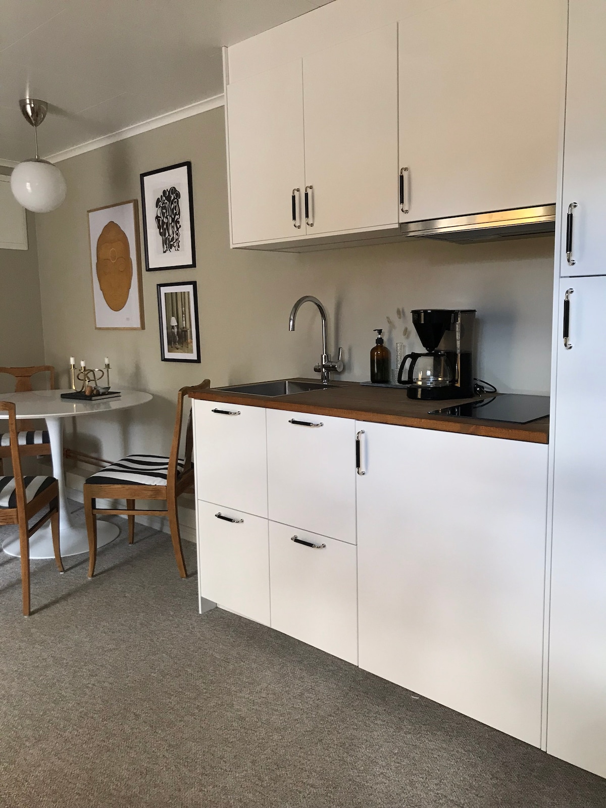 Por fin alquilamos nuestra casa de campo única, recientemente renovada (finalizada en 2022), con 1 habitación y cocina distribuidas en 2 plantas. En la planta baja hay un salón/cocina, cocina con 2 placas, microondas, cafetera y nevera con congelador. Mesa de comedor con capacidad para 4 personas. El baño es una auténtica joya: inodoro, lavabo con un gran banco de almacenamiento y ducha con paredes de cristal. Subiendo una escalera se encuentra el dormitorio, con una cama de 160 cm, un pequeño sofá y un sillón, así como un televisor inteligente giratorio. La casa de la granja está ubicada en el casco antiguo de Gävle, en pleno centro, cerca de todo.
