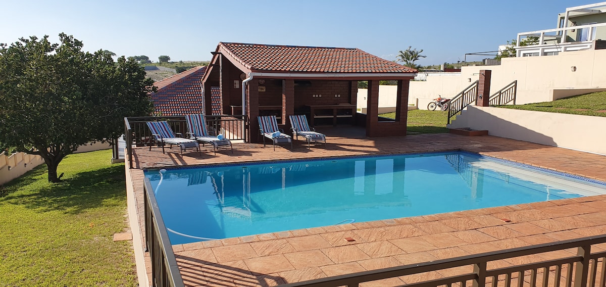 Fully equipped & serviced log house, with 2 outside braai/barbeque area with full ocean view, is walking distance from the main beach. There is a reef running parallel to the beach which makes for good snorkelling and fishing, also creating a lagoon during low tide which are perfect for swimming & other water activities. In the winter months (May - July), you can see the whales migrating. Minimum guests per night - 2 adults. Restaurant on resort, with delivery, TV & Wi-Fi services available.