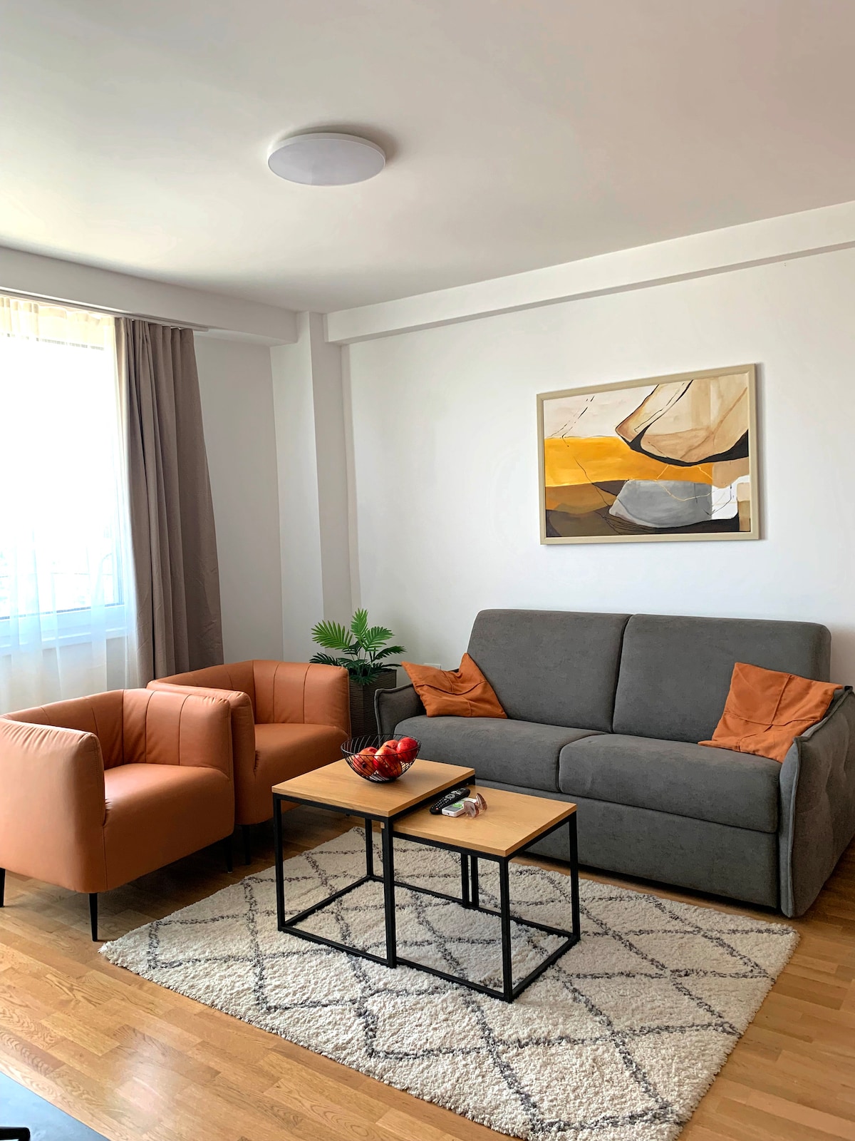 Welcome to our fully equipped apartment in a central and popular location. The building has two elevators and is close to a bakery, restaurant, market, bank, pharmacy, and fast food, bus station etc. Ideal for couples, solo travelers, or business guests, it features a full kitchen, fast Wi-Fi, a comfortable bed, and a modern interior. Private parking in a secure garage is included. Feel at home during your short or long stay. Book now to enjoy comfort and convenience!