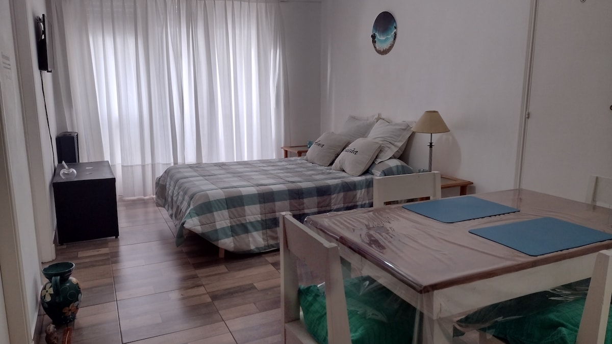 Disfruta de la sencillez de este alojamiento tranquilo y céntrico. El mismo cuenta con balcón a la calle. Está situado a media cuadra de Avenida Colon, a 1 cuadra de Plaza Mitre y a 7' de la playa. Con paradas de taxis y colectivos a 20mts y todo tipo de comercios en las cercanías. El departamento cuenta con cocina separada y totalmente equipada y en el living la mesa, una TV 43" smart y un confortable sillón. La habitación está equipada con un sommier 2 plazas totalmente nuevo.
