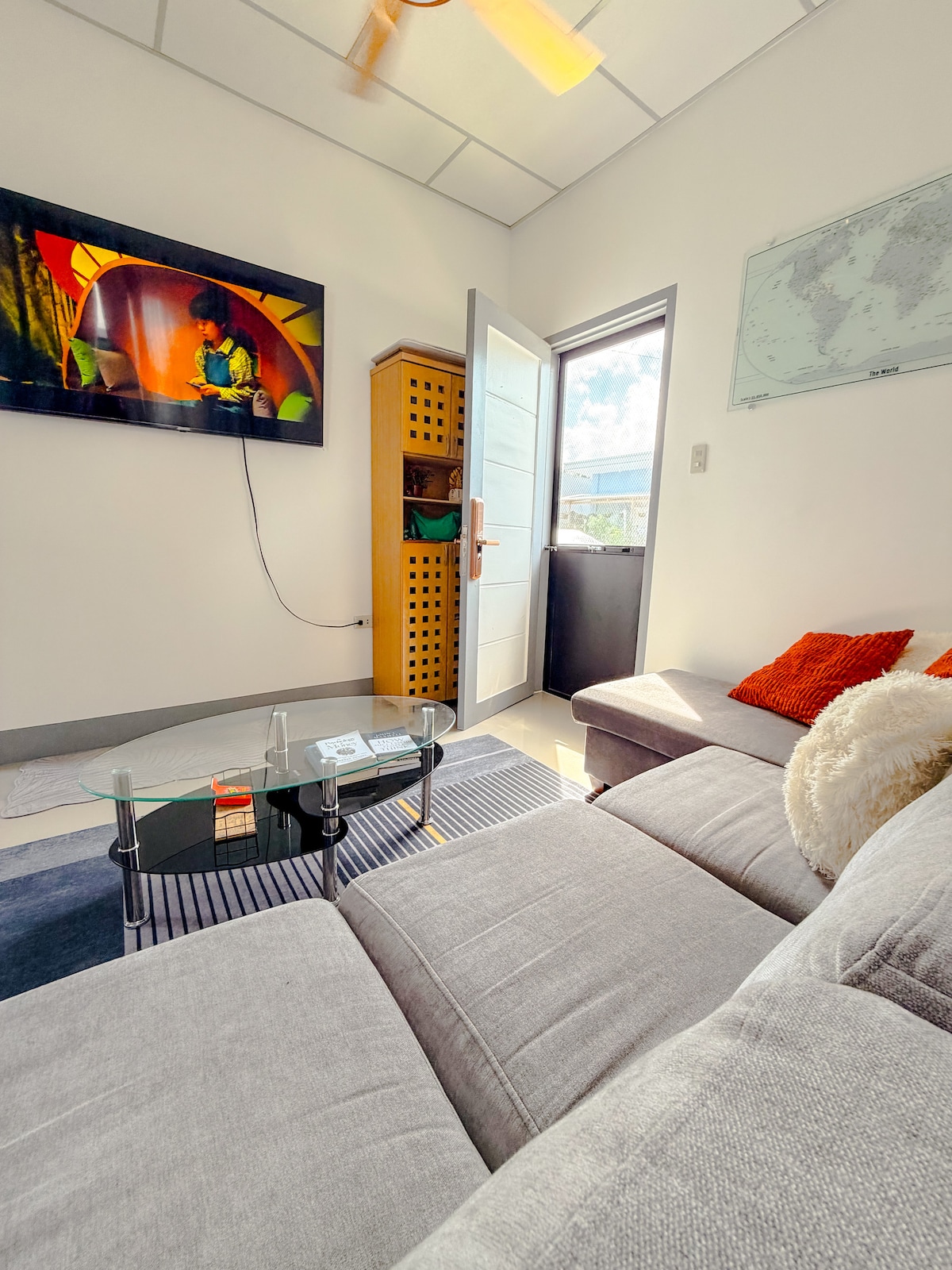 Fuente de Misericordia y Casa de Gracia • 2 dormitorios, 3 camas, 1 sala de estar y 1 baño. • 1er dormitorio con aire acondicionado, 2do dormitorio con ventilador, sala/comedor con aire acondicionado. • En un suburbio tranquilo y vigilado. • A 5-10 minutos de centros comerciales, bancos, escuelas, aeropuerto de Buayan. • A 20-30 minutos del aeropuerto de GenSan, Fishport, Saranggani Capitol y playas. • Wifi PLDT; TV con netflix • Electrodomésticos de cocina (arrocera, cocina, calentador de agua y nevera) • Toallas y artículos de aseo (jabón, champú, cepillo de dientes, pasta de dientes) • Con utensilios de cocina básicos • Circuito cerrado de televisión exterior para mayor seguridad.