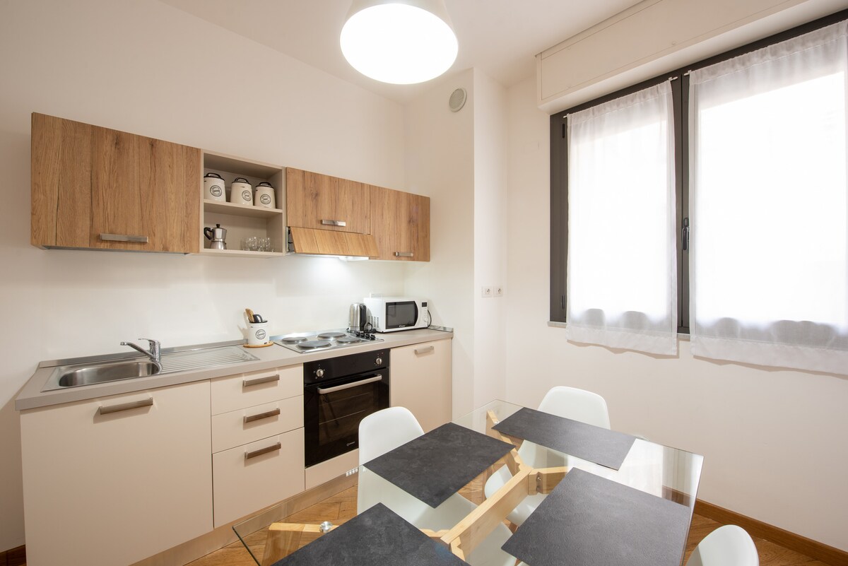 Apartamento ubicado en el barrio renacentista a pocos pasos de los principales puntos de interés, como la zona del Puerto Viejo con su famoso Acuario, la Biosfera, el ascensor Bigo, el Museo del Mar con el submarino N.Sauro y la Ciudad de los Niños. El alojamiento está equipado con aire acondicionado, WiFi, baño privado y cocina con refrigerador, estufa, cafetera. Por la mañana se puede disfrutar del desayuno buffet en el hotel Helvetia de 06:30 a 10:30.