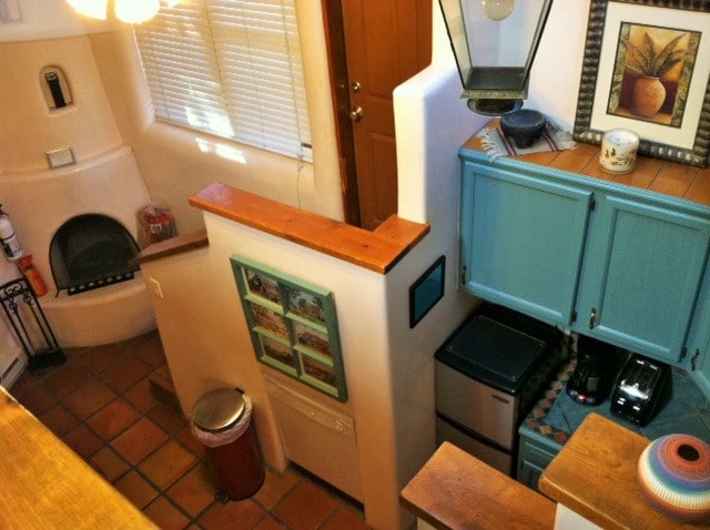 Pequeño, pero acogedor y soleado Estudio con loft para dormir (futón de tamaño completo perfecto para una persona) se encuentra en el corazón de la parte antigua de Santa Fe en una calle tranquila a poca distancia de la Plaza. La decoración es ecléctica en el sentido del "estilo Santa Fe" popular a nivel local con algunas piezas de mobiliario desgastadas. Hay una cocina pequeña con 2 fogones eléctricos (sin microondas) conveniente para calentar rápidamente. Hay una escalera de madera resistente que conduce al altillo para dormir: ten cuidado si tienes acrofobia.