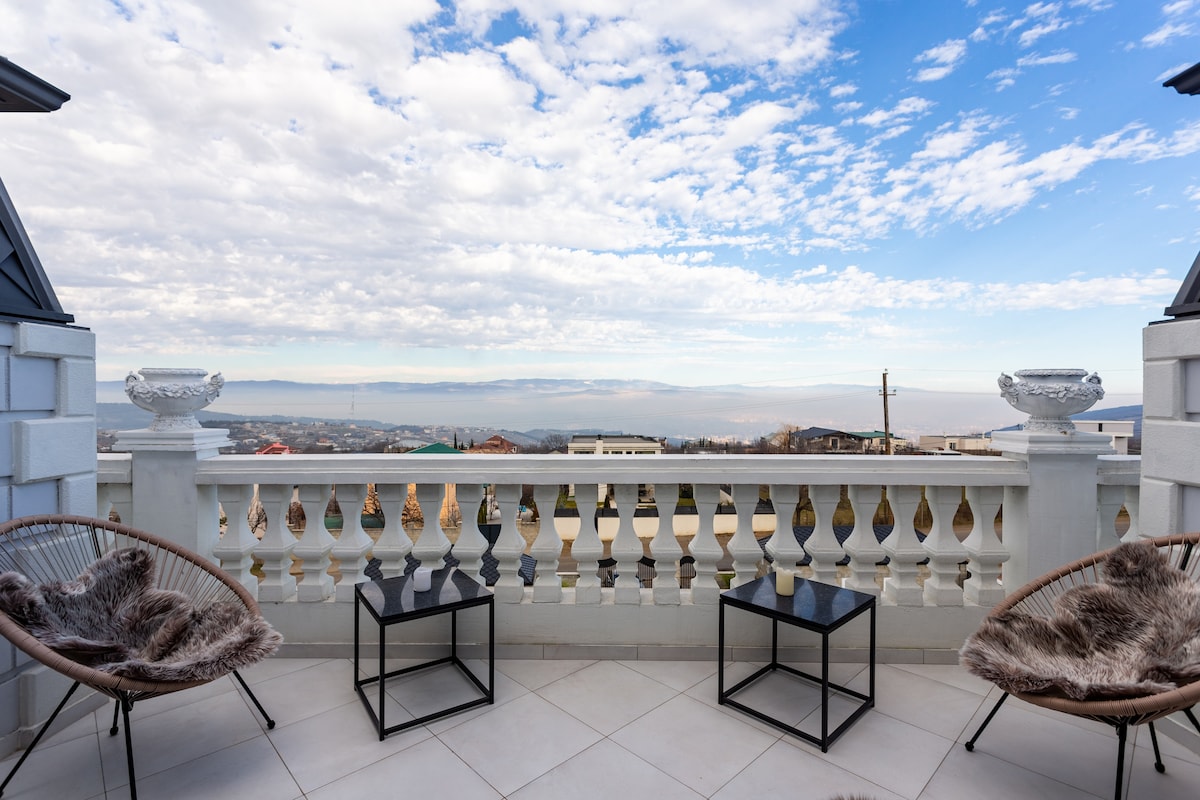 Si le gusta vivir en un espacio grande con vistas, comodidad, bienvenido, disfrute y siéntase como en casa. 200 metros cuadrados, 2 plantas, 4 dormitorios, 2 salas de estar, 2 baños, 2 balcones, 5ª planta. Vistas a la Catedral de la Santísima Trinidad, la montaña Mtatsminda, la torre de televisión. Apartamento cerca de la avenida David Agmashenebeli, Museo Pirosmani. Soy guía, organizo excursiones por Tiflis y Georgia, traslados desde/hacia el aeropuerto, ocio para los huéspedes