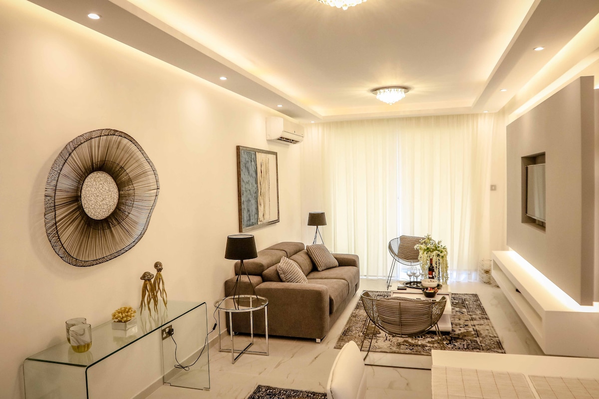 Apartamento contemporáneo de 2 dormitorios a 1,6 km del mar en Linopetra, Limasol. ¡Tienes una terraza privada en la azotea con jacuzzi! La azotea está equipada con barbacoa, fogata, lavabo, salón y comedor con vistas a la ciudad. Hay 2 dormitorios dobles, 2 baños, cocina moderna totalmente equipada con comedor, balcón cubierto, INCREÍBLE sofá con mecanismo de extensión. Disfruta de Nespresso, la Smart TV. Tenga en cuenta que hay obras en curso al otro lado de la carretera, que pueden comenzar temprano debido al calor.