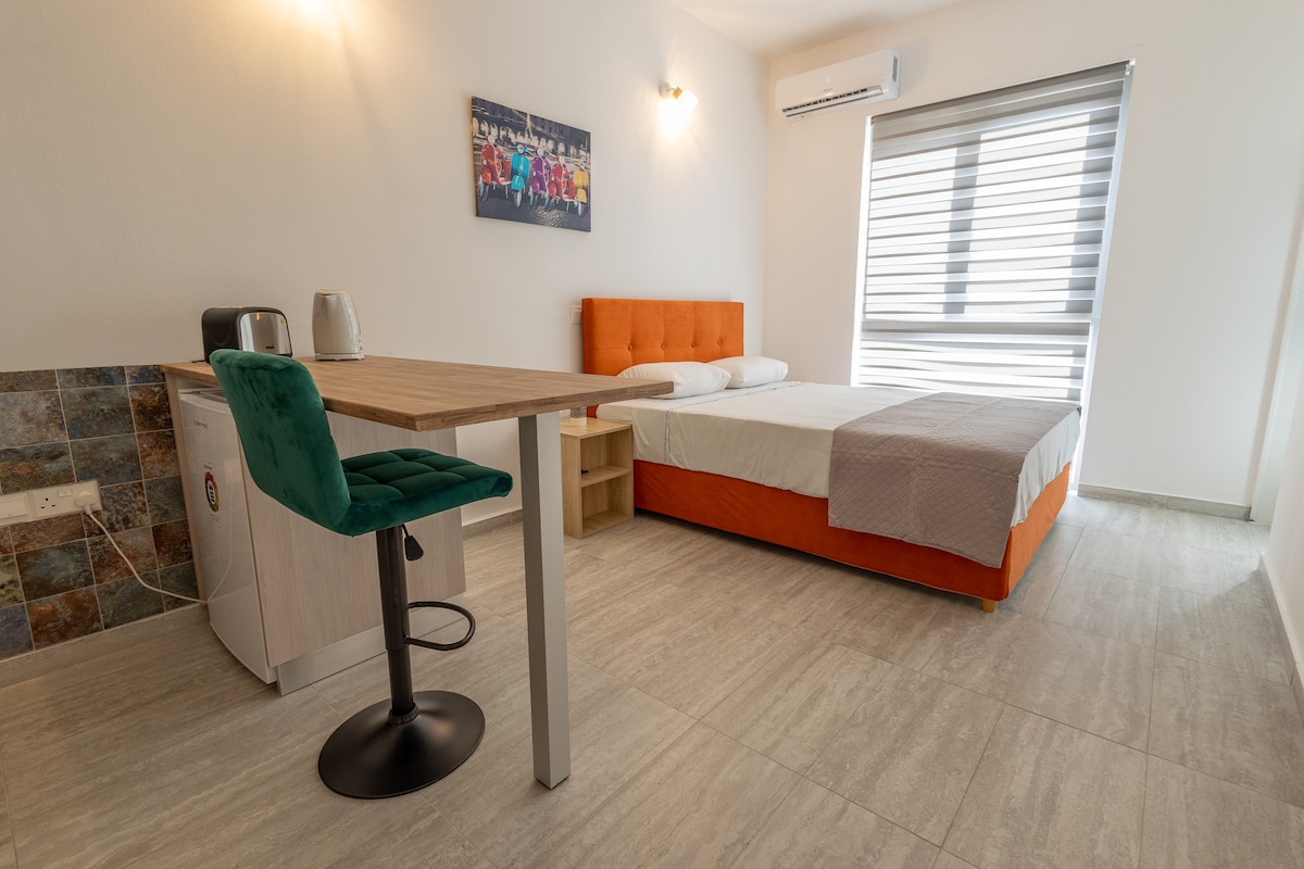 Disfruta de una experiencia elegante en este lugar céntrico. Estudio recién renovado en el centro de la ciudad de Limassol. A poca distancia de la playa y la terminal de autobuses que se extiende a lo largo de la costa de la ciudad hacia el puerto deportivo de la ciudad y el castillo medieval. Está ubicado en la planta baja de un complejo de departamentos con estacionamiento gratuito en el patio y alrededor del vecindario. Barrio tranquilo, a poca distancia de supermercados, restaurantes tradicionales, panaderías, cafeterías y bares.