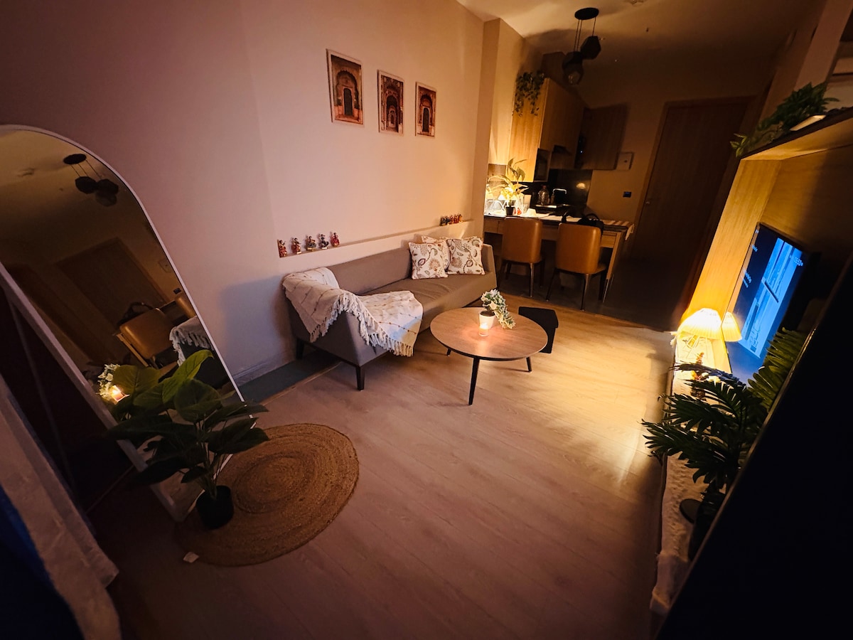 TheScapeCity presents you a thoughtfully designed 1BHK in the heart of Golf Course Road, Sector 55, Gurgaon. Just 5 mins walk to Sector 55-56 Metro, 15 mins to Cyber City & 17 mins to Ambience Mall - location doesn't get better than this. Perfect for couples, solo travelers, business professionals, and small families looking for a clean, private, home-like stay. Cozy living room, fully equipped kitchen, spacious bathroom, and a big terrace to unwind in the evenings.