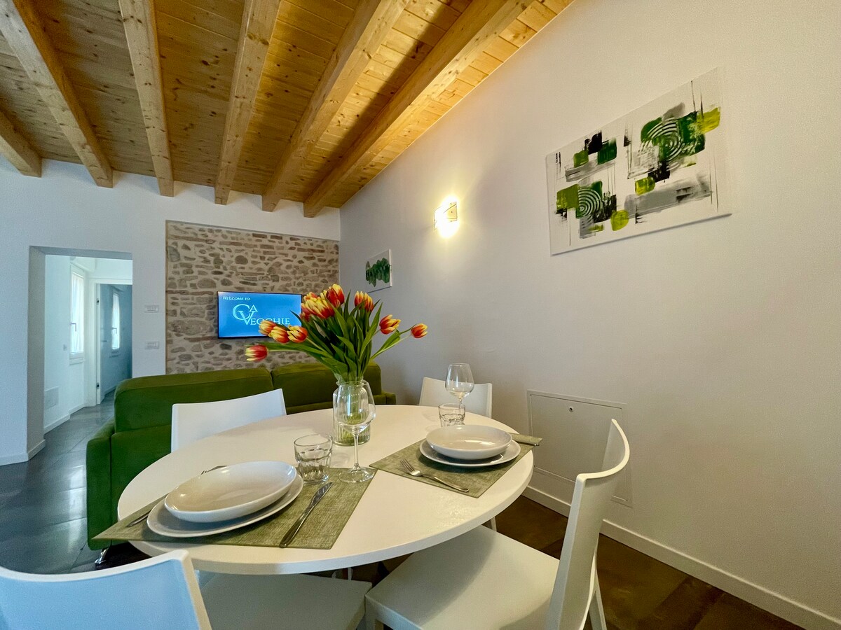 Casa en el centro histórico de Desenzano, ideal para parejas a 500 metros del lago y las plazas principales, entrada privada en la planta baja, jardín con espacio de relajación y zona con mesa y sillas, entorno seleccionado con un nuevo baño equipado con ducha. Cocina equipada con lavavajillas, lavadora, horno, nevera y esquina de café. Sala con mesa, sofá y TV. Dormitorio espacioso con cama doble, escritorio y armario cómodo. Cerca de tiendas, bares y restaurantes.