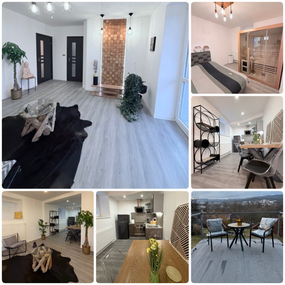 Un exclusivo apartamento de 70 m2 con sauna en el apartamento y una salida con jardín en una nueva villa con vistas doradas a las montañas gigantes desde todas las ventanas. Enorme terraza (40 m²) perfecta para relajarse. Sala con una cocina bien equipada y un sofá cama para dormir. Dormitorio con baño privado y colchón de alta calidad. Dos baños de los más altos estándares. Barrio tranquilo y pintoresco. Cerca de tiendas, restaurantes, senderos y atracciones de Szklarska Poręba. Espacio de estacionamiento con cargador de coche eléctrico.