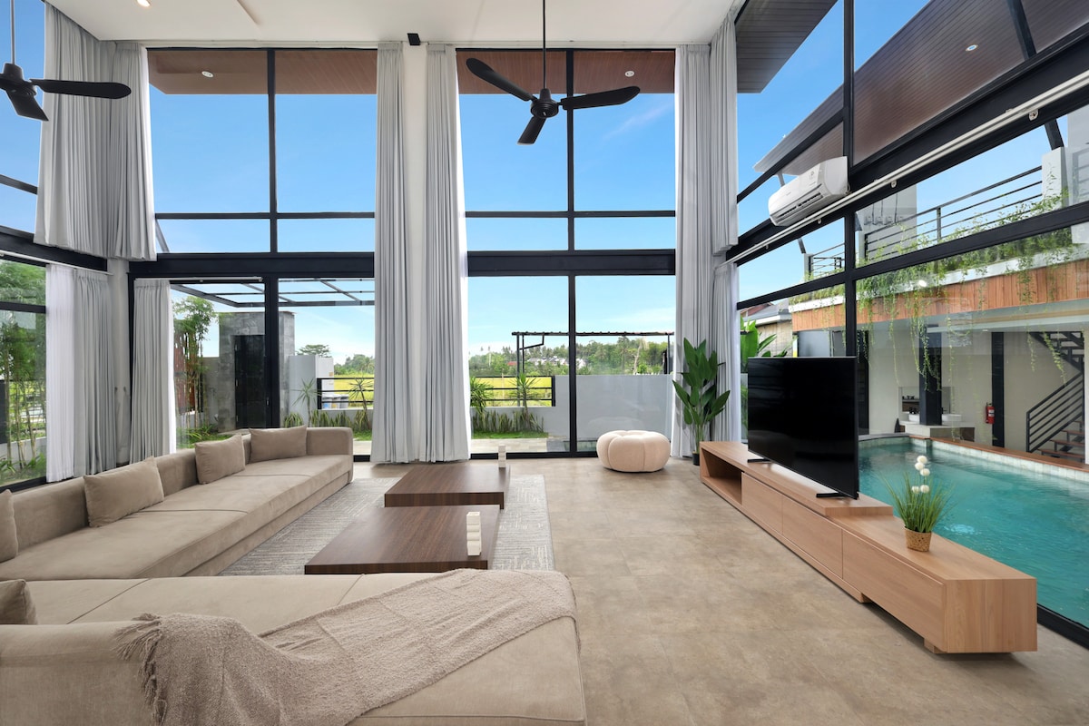 ¿Necesitas aislamiento, tranquilidad y vistas impresionantes? Esta encantadora villa privada de lujo con 1 dormitorio y piscina se encuentra entre hermosos arrozales en terraza. Ya sea en un retiro de escritura, viaje de investigación, nómada digital o una escapada romántica, ¡este es el lugar perfecto para relajarse, pensar y crear! Un sereno escondite rural a solo 8 minutos del centro de Ubud. Bonus: ¡ofrecemos a nuestros huéspedes lavado, secado y planchado de ropa gratis dos veces por semana!