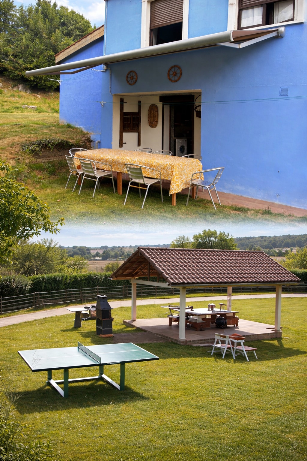 Nuestra relajante y tranquila casa esta situada a 12 km de la entrada de Gijon y 13 de Oviedo En una zona totalmente rural ,tenemos vacas,hórreo, en los exteriores además de la zona de mesa y bancos de debajo del hórreo,tenemos una cocina comedor "l'ayalga"equipada con:vitrocerámica portátil, microondas, nevera, alacena con todo tipo de menaje,agua caliente,fregadero ,mesa y sillas.Todo este equipamiento se puede utilizar también para cocinar en la zona de debajo del horreo. VV2300AS