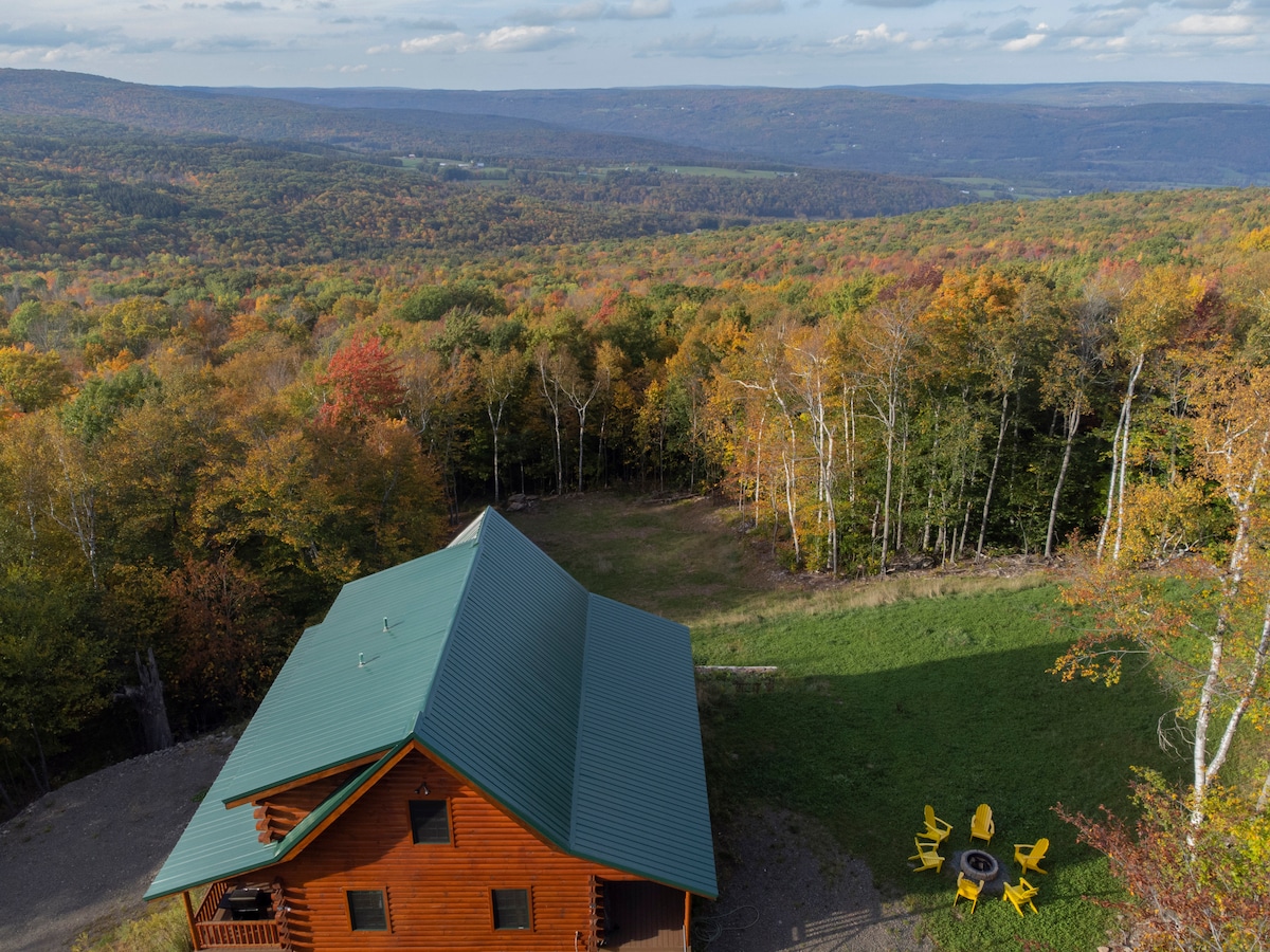 Cabaña de madera en lo alto de Catskills con vistas a las montañas