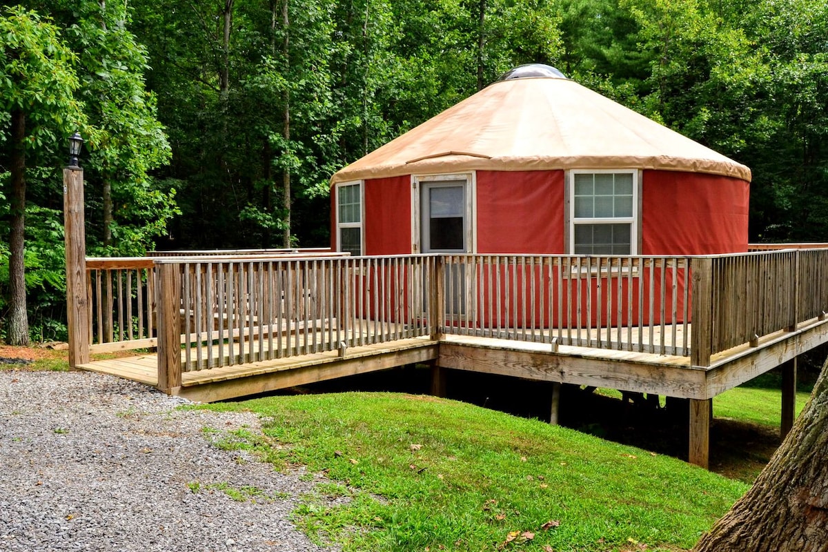 Glampers are invited to enjoy a stay in this quirky yurt rental set on the banks of the New River in Virginia. The yurt can sleep a total of six guests as there are a range of bed options to suit the needs of the group. All of the beds are dressed in comfortable linens to ensure that guests can sleep peacefully. The rental also has its own bathroom for guests' convenience. The yurt is bright and spacious and, downstairs, glampers will find the cozy living area that offers comfy couches