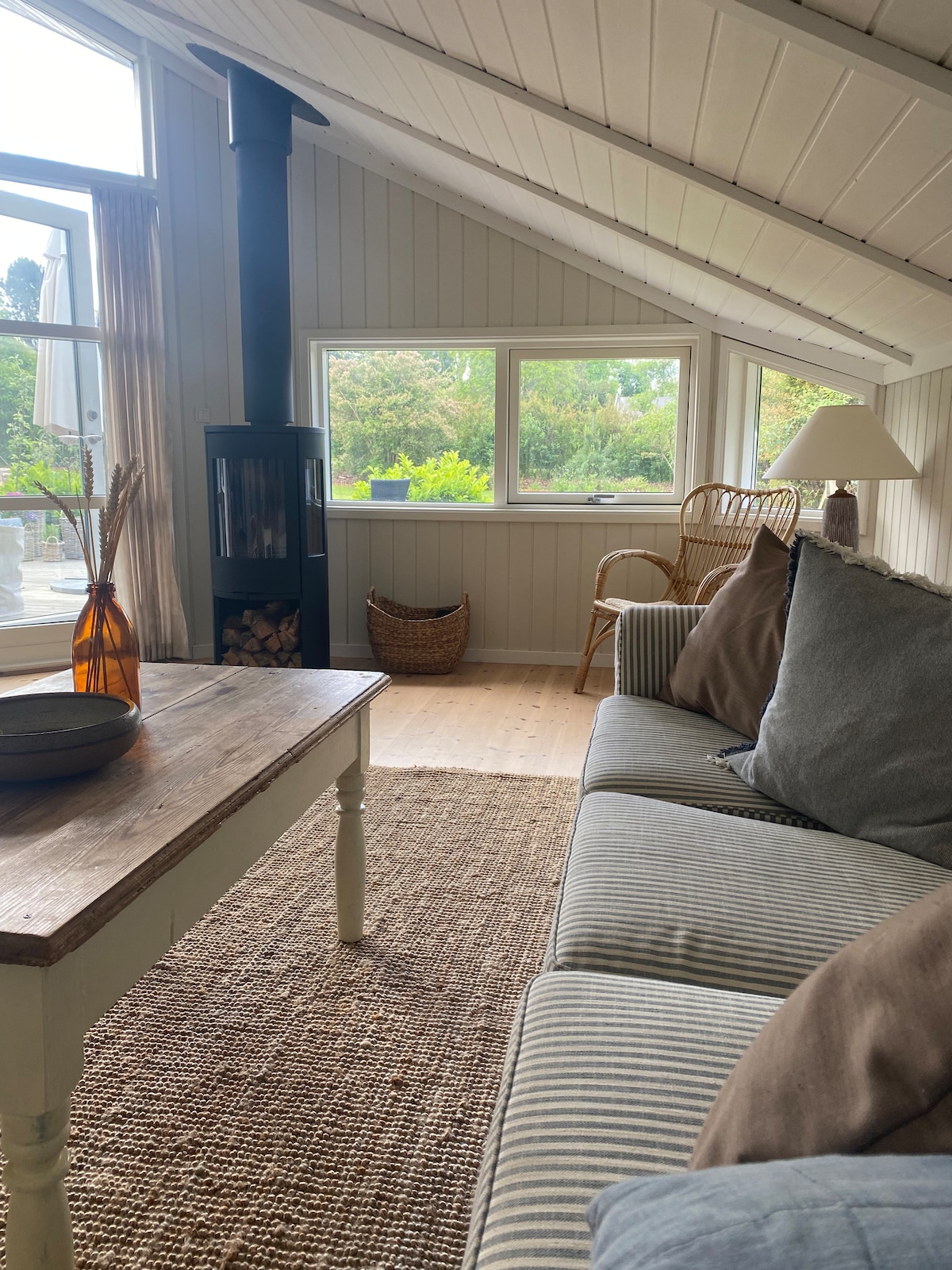 Wonderful vacation house situated a stone's throw from the water and the beach. Literally speaking! Here you can wake up to the gentle sound of the waves, almost calling your name, if you feel for a morning swim. On warm days, you can enjoy your meals on your preferred terrace out of the three. Perhaps in the morning sun or with a beautiful view to the sunset. The high roof inside creates a spacious feeling making it easy for family and friends to enjoy life together - all times of the year.