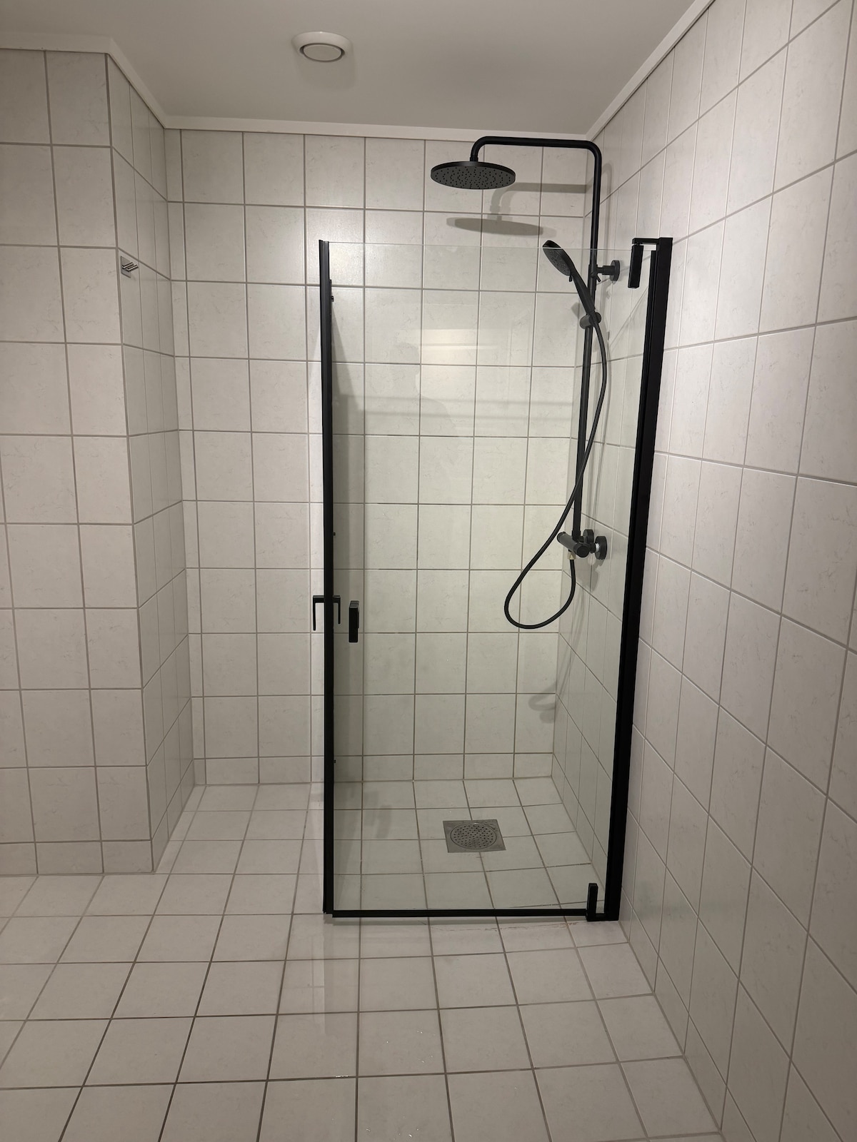 Du går rett inn fra gatenivå, og til en stille del av bygningen. Når du kommer inn i leiligheten, ser du rett ned og ut over sjøen! På hver side ligger soverommene, helt skjermet fra lyd fra gaten. Stort bad i samme etasje. Ned en halv trapp, og du befinner deg i et voluminøst rom med vinduer tildels fra gulv - til taket som er 4 meter opp! Vakkert kjøkken, pent spiseområde med utsikt, og en veldig koselig tv-krok finner du der nede. Og utgang til privat veranda som henger rett over sjøen.