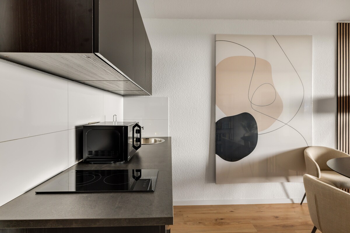Encantador apartamento de 38 metros cuadrados en una casa anunciada de 1899. Planta baja, acceso accesible. Elegantemente amueblado con cocina totalmente equipada, baño moderno, fibra óptica de 1000 Mbit, Netflix y Disney+, TV inteligente y WiFi. Ubicación céntrica, a pocos minutos del centro de la ciudad con restaurantes, cafeterías y tiendas. ¡Perfecto para viajeros de negocios y vacacionistas! ¡Reserva ahora y siéntete bien!