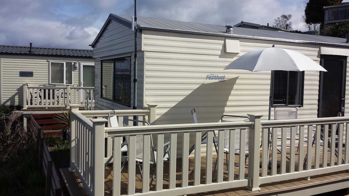 Esta caravana vacacional estática de 6 literas estáticas estáticas se encuentra dentro de Cloch Caravan Site, que tiene 24 acres de bosque maduro como su entorno. Esta es una ubicación hermosa a lo largo del río Clyde y cerca del faro de Cloch junto a Gourock, Damos la bienvenida a los perros, pero restringimos un máximo de dos animales. Como dueño de un perro responsable, se espera que limpies después de ellos. La caravana tiene malla de alambre alrededor de la base para garantizar que los perros (y niños pequeños) no puedan pasar por debajo de la caravana y hacer una oferta por la libertad.