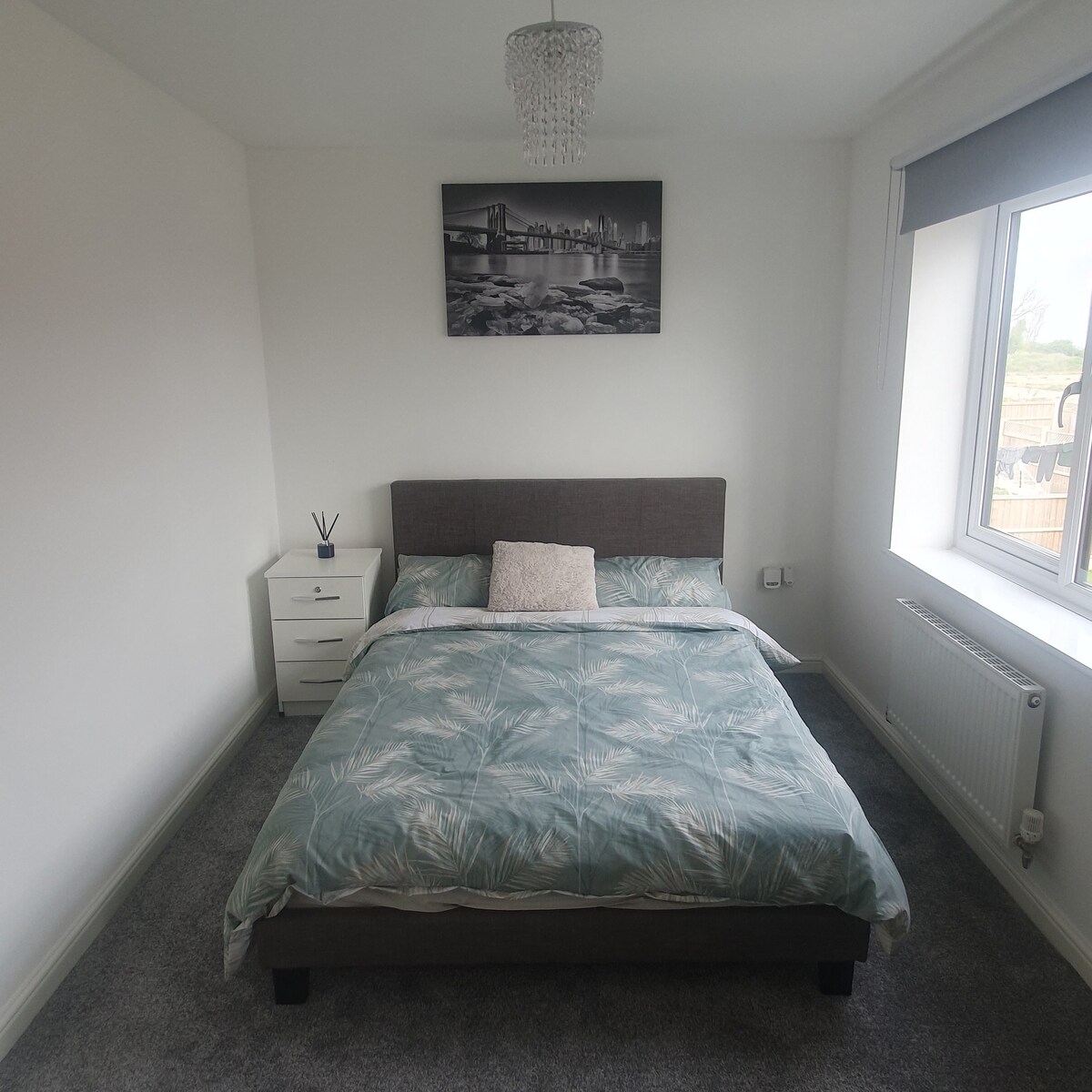 Un espacioso apartamento en la planta superior con un balcón separado y ordenado con vistas al paseo marítimo y al museo Royal Armouries. Viene con una cómoda cama doble en un dormitorio limpio con baño privado, una gran sala de estar con una cocina integrada y un saco de boxeo de cuerpo entero para la terapia del estrés. El apartamento está a solo unos minutos (10-15 minutos) a pie del centro de la ciudad, pero el barrio es lo suficientemente tranquilo como para dormir bien.