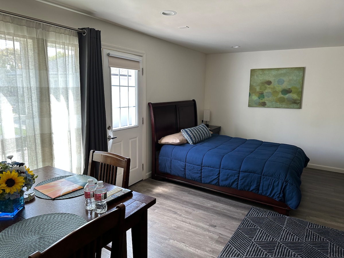 Estudio privado en el patio trasero con cocina y aparcamiento gratuito