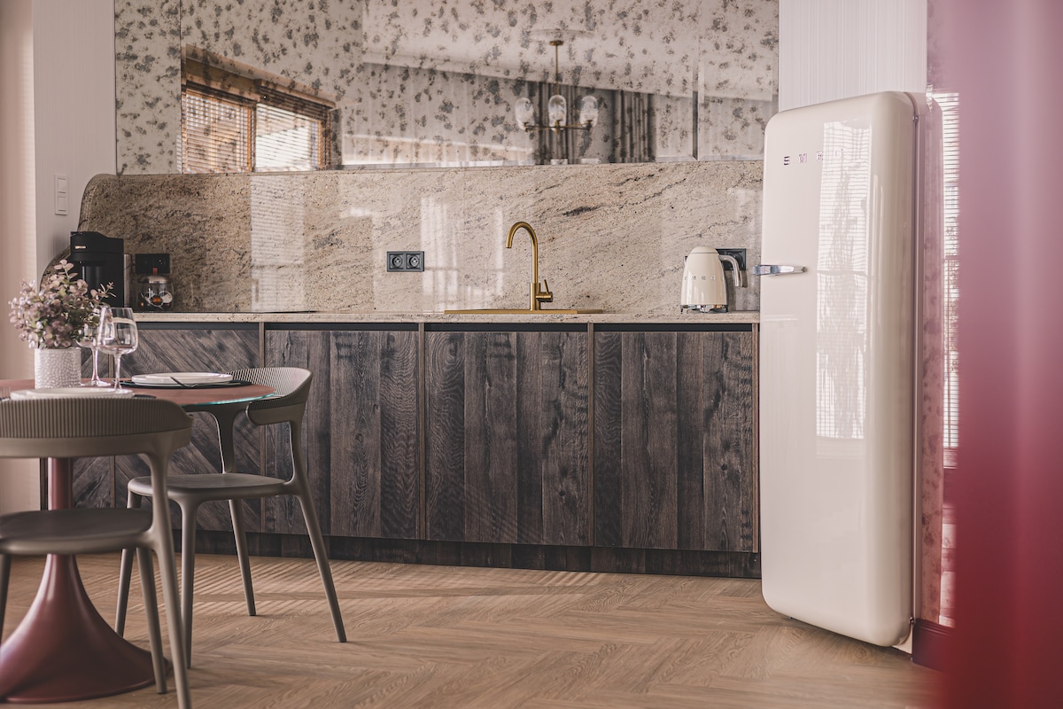 💎 🇫🇷 Feel the Parisian vibe! 🥂 Enjoy the Fireplace AC ❄️ 🌡️, Turntable 💿, Premium Marshall Audio 🎼, and FAST WiFi (Comfort and Independence Guaranteed). This is your exclusive, two-room Art Déco retreat, perfect for a luxurious long weekend or business trip. Elegant AC Apartment in the city center, in a historic tenement house dating back to 1906. Discover the best of Bydgoszcz – the Market Square, Theater, and charming paths along the Brda River are just around the corner.