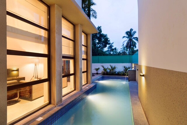 tbkvillas .com VILLA 10 will give you the feeling of concord and fluid spaces that make music for all your senses. The large cantilevered pergola that casts ever-changing shadows in tandem with the sun is like the dance of light.The deep orange Patra Devi stones are in resonance with the flowering Spathodeas trees. A double height entrance and tall slender finned windows welcome diffused light into the villas in tune with the shifting moods outside.The villa offers a perfect luxurious lifestyle