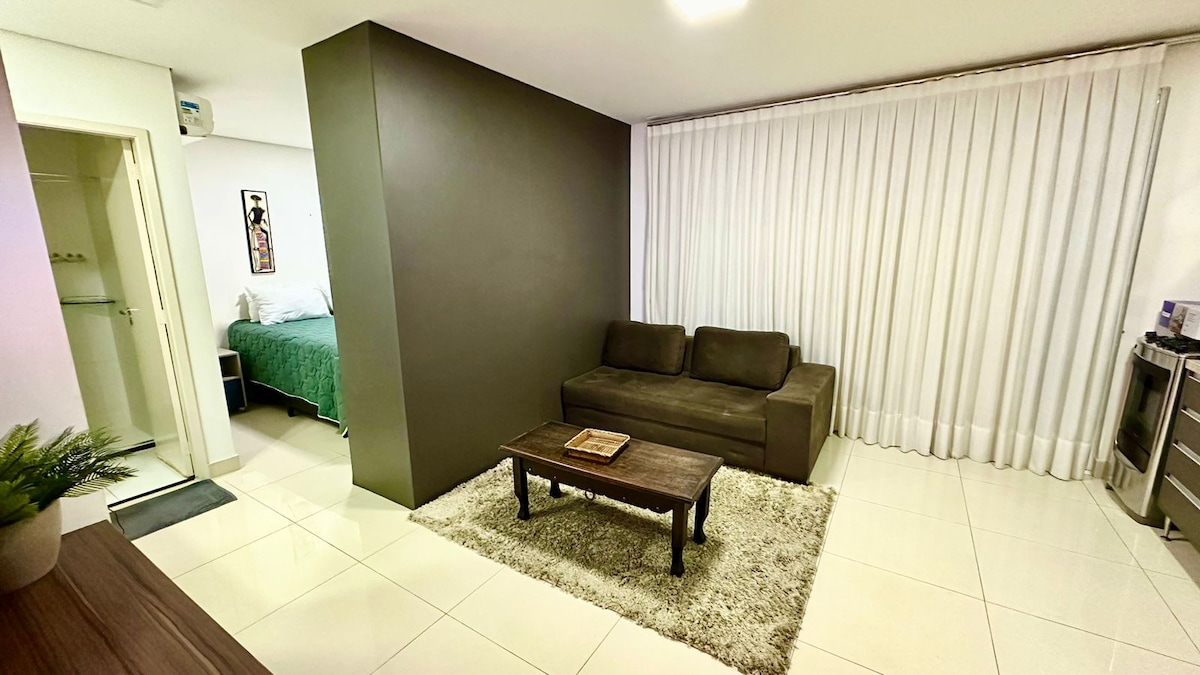 ❗️Un nuevo🤩 condominio único, elegante y sofisticado, hecho para que te sientas como en casa. Mira tu película favorita en el dormitorio o la sala de estar en el televisor inteligente giratorio más moderno con aire acondicionado, mesa de comedor y espacio de trabajo. ¡Descansa en la mejor cama, deleita con la ducha más deliciosa, disfruta del balcón y de una hermosa puesta de sol con vistas al parque y disfruta del contemporáneo Setor Bueno en la mejor región de Goiânia ! Condomínio Tai Residências