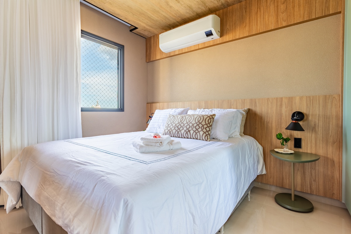 Loft de alta gama. Cama Queen de hospitalidad americana, colchón de muelles y látex. Cocina completa para cocinar con varios electrodomésticos. Tiene aire acondicionado Ideal para trabajar: escritorio, silla ergonómica, wifi de alta velocidad (400 Mb). Se proporcionan toallas y sábanas. Es necesario enviar el documento de identificación del huésped, que solo pueden entrar al condominio con los datos de este documento.