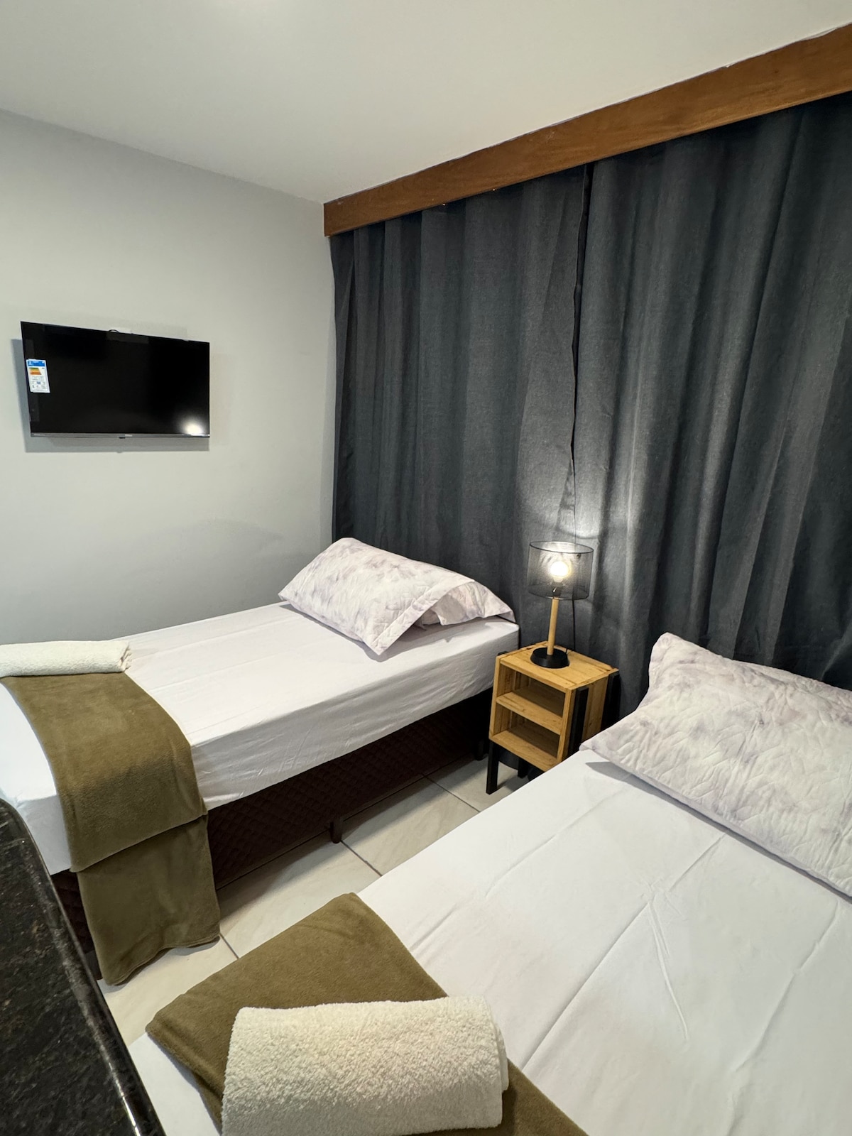 Apartamento equipado con cama tamaño queen, mesa para portátil, armario, despensa, minibar, microondas, sofá, aire acondicionado, barra de comedor, 2 bancos, Smart TV (solo para streaming, no televisión abierta o cerrada) y conexión wifi. Piso de cerámica. Garaje cubierto. ¡Vistas a la Praça do Sol! ¡Excelente ubicación! No hay ningún servicio incluido (limpieza y otros). Tenemos algunos utensilios de despensa y ropa de cama. 2 adultos y 1 niño durmiendo con sus padres.