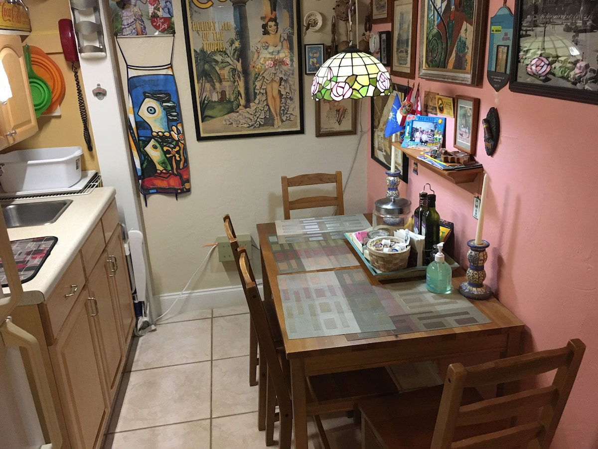 Amplio dormitorio en una hermosa casa situada en el centro de un distrito histórico justo al lado del centro de la ciudad y Brickell, con capacidad para 2 personas. Disfruta del encantador y romántico jardín con mesas de comedor. Tienes acceso al comedor y a la sala de estar, así como a un porche genial. Cerca de South Beach, el centro de la ciudad, Wynwood, el distrito de diseño, Little Havana, el distrito de las artes y excelentes restaurantes en el río. Se incluye un desayuno saludable de granola, fruta, yogur, pasteles, miel, leche, café, té y zumo de naranja.