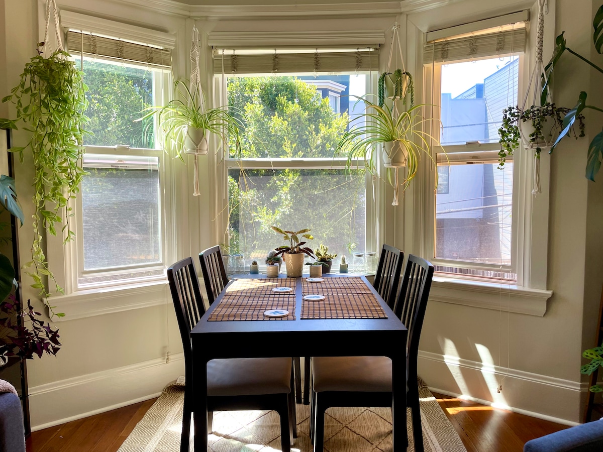Disfruta de una experiencia clásica de San Francisco en este apartamento de 3 dormitorios y piso completo bellamente renovado. ¡La ubicación no puede ser superada! A pocos pasos del corredor de negocios de Valencia St y del corazón de Mission. ¡Se puede caminar hasta Dolores Park, BART, el Castro y mucho más! Ideal para familias, vacacionistas y viajeros de negocios por igual. Incluimos todos los artículos esenciales aptos para niños. Un dormitorio se puede convertir completamente en una oficina con un escritorio e impresora.