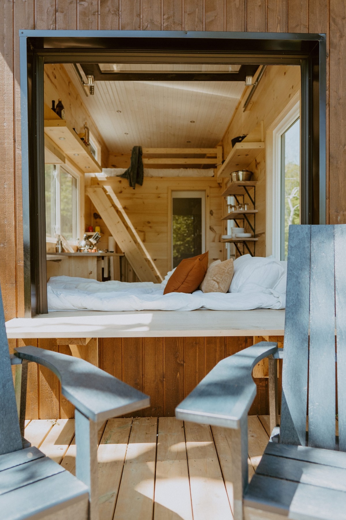 Relájate en esta acogedora cabaña de acero con sauna