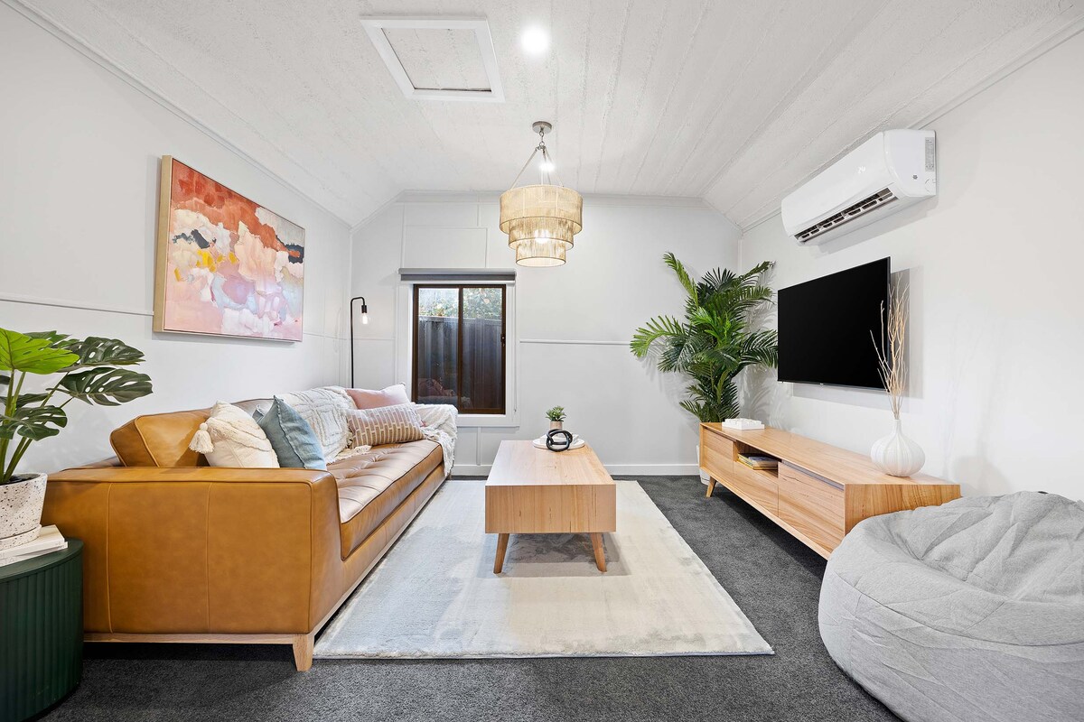 Esta encantadora casa seguramente te robará el corazón con su calidez y encanto. Ubicada en el corazón de Inverleigh, Barbie May's ofrece una idílica casa de campo de cuatro dormitorios donde cada detalle te envuelve con una sensación de sentirse como en casa. Imagina despertarte con los suaves sonidos de la naturaleza, disfrutar de un desayuno tranquilo en la terraza trasera o compartir una noche acogedora junto a nuestras chimeneas interiores o exteriores. Estamos a una calle de la calle principal, así que es céntrico y tranquilo.