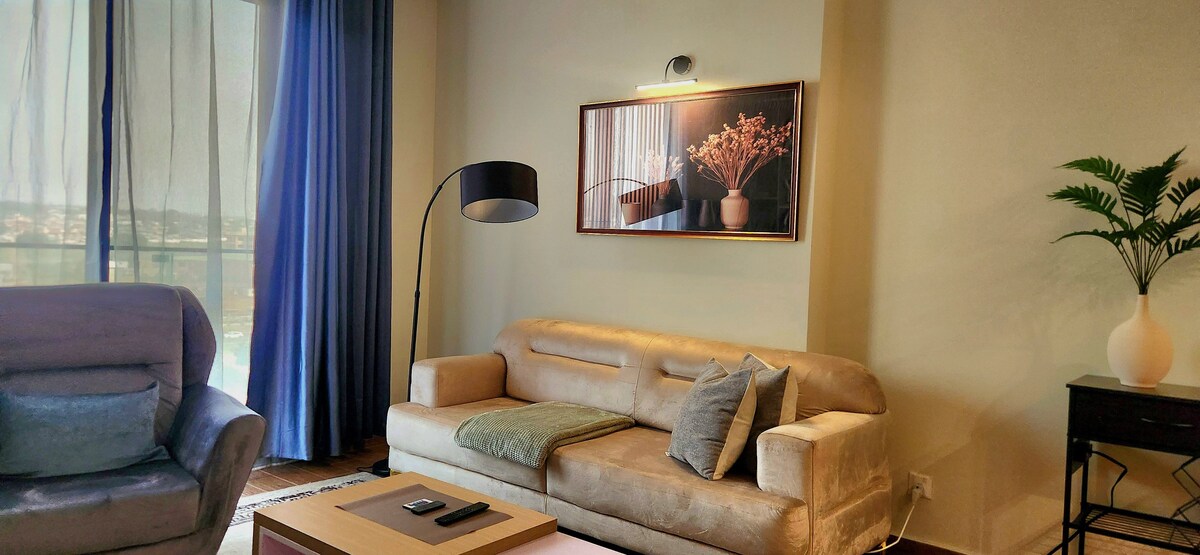 Executive 1 bedroom apartment + living room & open plan kitchen close to the airport, and in the heart of the business district. Short and long-term stays . Peaceful and serene, ideal for both working and relaxation lifestyles. Facility has a lounge, a gym, a restaurant, a swimming pool and a rooftop. Our management can also cater for your lunches and dinners privately, and provide meals for your entire stay. For your utmost comfort, book now and experience our top-notch hospitality!