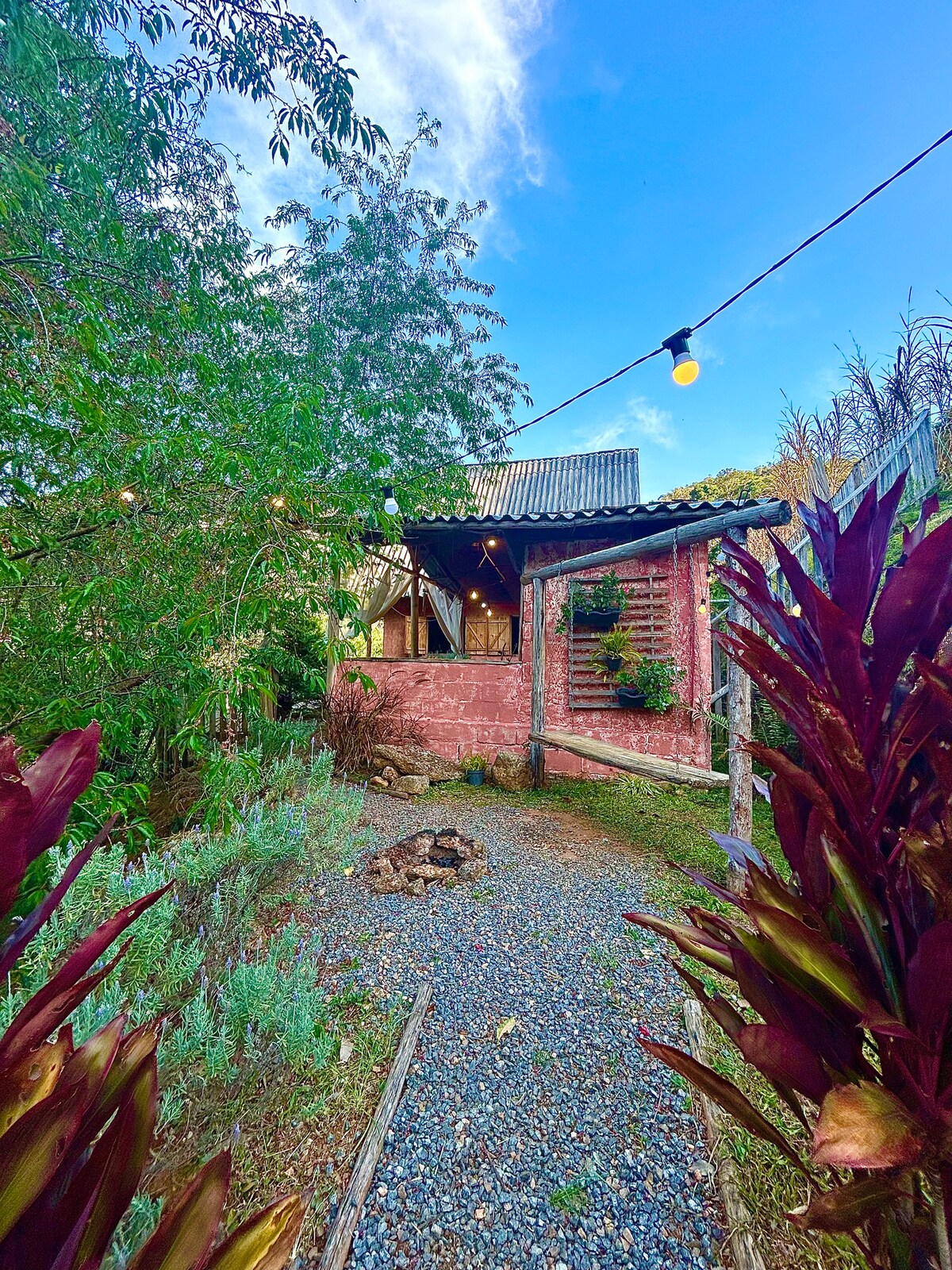 LA CASA DE CAMPO El refugio es de total exclusividad del huésped, tenemos una única cabaña rústica, con un patio cercado y una amplia terraza, con hamaca y columpio para relajarse y escuchar el sonido de las aguas del río y de los pájaros, desde el área del columpio tendrá acceso a un pequeño sendero al río, río con una pequeña cascada, exclusivo para que pueda relajarse con su familia tranquilamente. Aquí vives momentos únicos en contacto con la naturaleza, te reencuentras, te conectas con lo que importa. Aquí hay amor, historia.