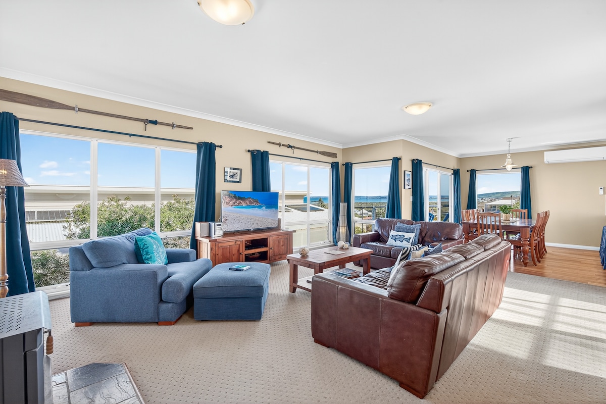 «Bluffview» ofrece a los huéspedes algo muy especial en su experiencia vacacional, ¡las vistas son increíbles! Estas vistas se extienden hasta donde alcanza la vista, desde Granite Island justo al otro lado del "Bluff" y más allá. Durante los meses de invierno, a menudo se ven ballenas desde las ventanas de la sala de estar. La casa ha sido decorada con colores brillantes y atrevidos, manteniendo al mismo tiempo un enfoque minimalista, es muy espaciosa. Con alfombras nuevas en todas las principales áreas de estar, es muy cómoda.