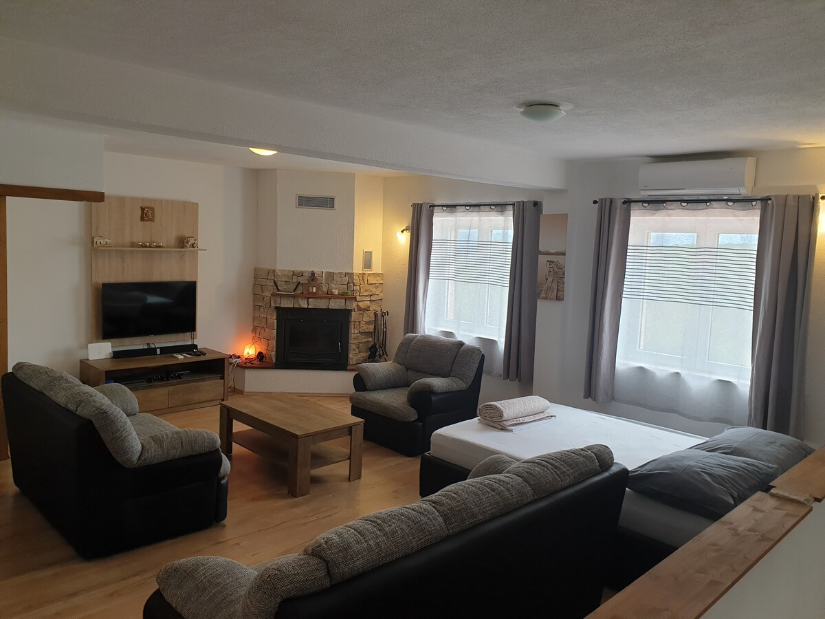 Bienvenido a Relax House Joja, una moderna casa de vacaciones ubicada en una tranquila zona rural cerca de Sinj. Es la escapada perfecta para parejas, familias y cualquier persona que busque relajarse y disfrutar de unos días de completa relajación. Sobre el espacio La casa cuenta con un interior luminoso y espacioso diseñado para la comodidad y una sensación cálida y hogareña. Disfruta de la decoración moderna con elementos naturales y relájate junto a la chimenea, que añade un ambiente acogedor especial.