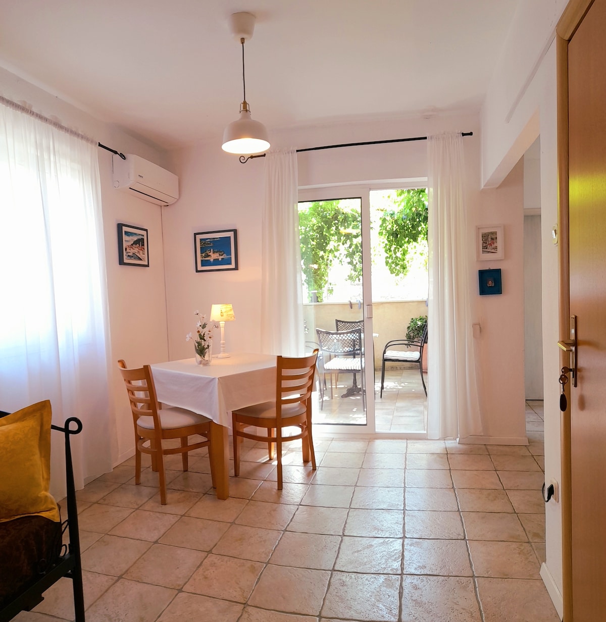 El departamento está ubicado en una casa de arquitectura dálmata original de bloques de piedra de 60 cm de ancho. Se encuentra en un lugar tranquilo y agradable. Está a solo 2 minutos caminando desde el mar. El estacionamiento privado para varios vehículos está a 1 minuto a pie.