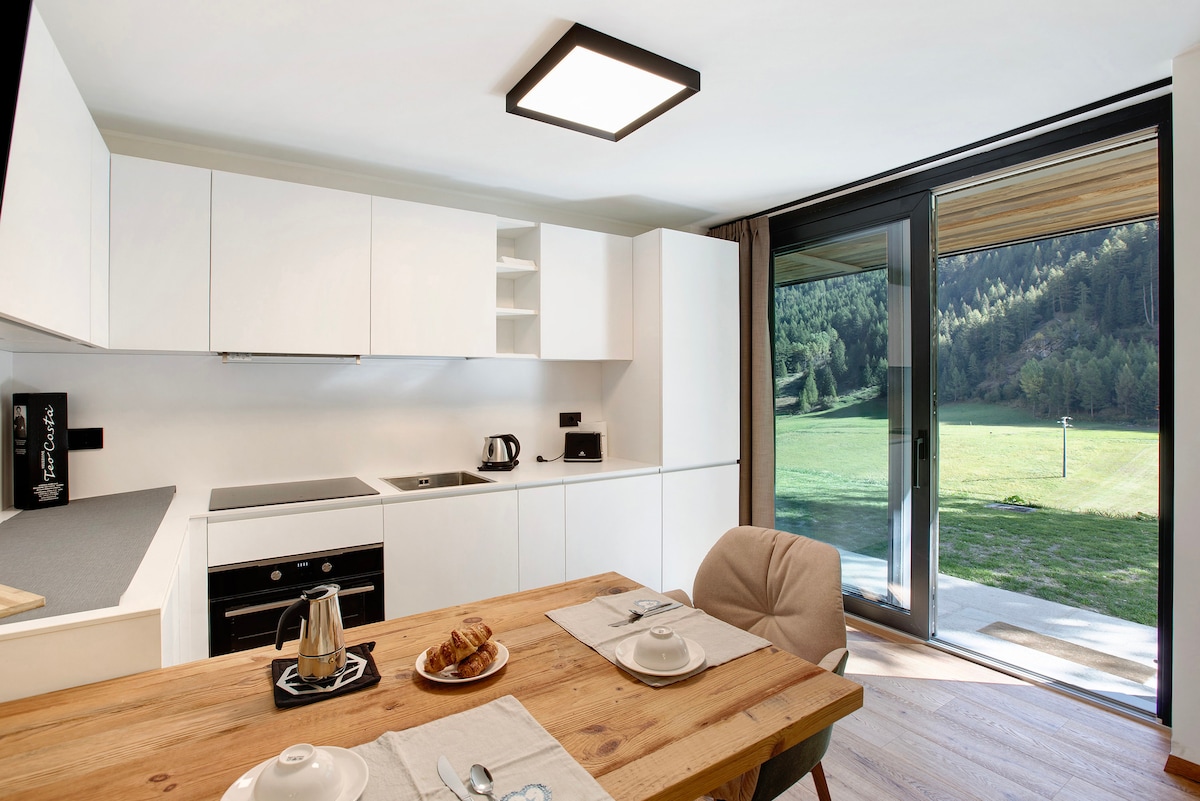 ¡Una casa acogedora y luminosa con una vista impresionante del Gran Paradiso y el prado de St Ursus! En el interior, las paredes completamente cubiertas de madera, los encantadores muebles incrustados y la estufa de azulejos te darán un ambiente cálido y familiar, típico de las cabañas de montaña. En el exterior, puedes relajarte en el jardín privado (equipado con una mesa, bancos y tumbonas) y disfrutar del sol desde primera hora de la mañana hasta última hora de la tarde.