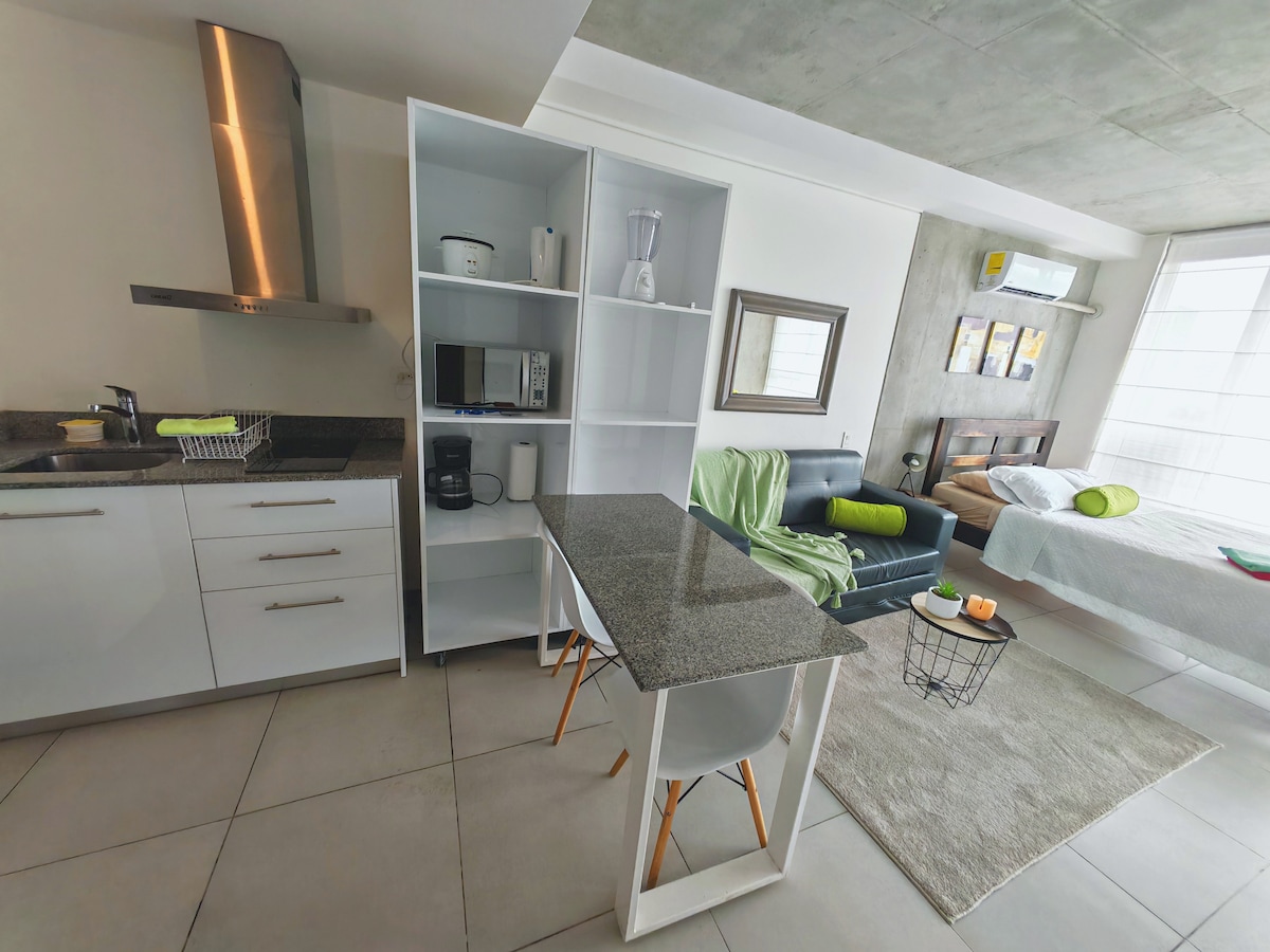 El apartamento está totalmente amueblado; tiene agua caliente, TV (con Magis), cocina, microondas, refrigeradora, utensillos de cocina. Internet fibra óptica, 300 Mbs. Limpieza 2 veces a la semana (para estadias largas). Para estancias mayores a una semana hay acceso a un espacio común de lavandería. Hay dos mini súper al frente. Se ofrece espacio de parqueo PERO HAY QUE SOLICITARLO PREVIAMENTE PARA RESERVARLO. El parqueo es para vehiculos medianos o pequeños, PERO NO PARA VEHICULOS GRADES.