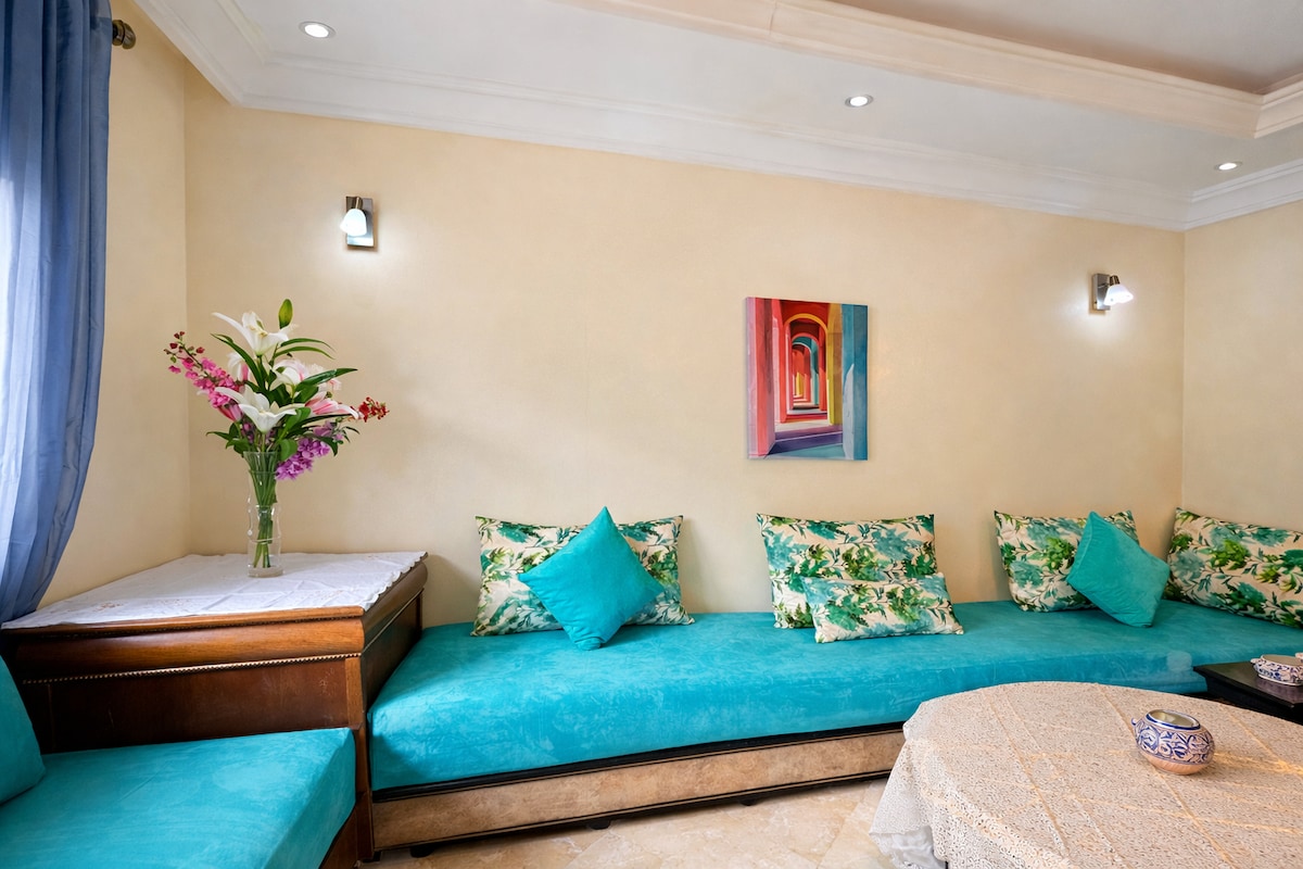 Descubre el lujo en el barrio de las princesas en Casablanca. Nuestro elegante apartamento combina comodidades modernas y una decoración elegante para una estadía inolvidable. Con una ubicación ideal: cerca del estadio 🏟 mohamed 5 y de Casablanca finance city. el apartamento está rodeado de los grandes centros comerciales de las tiendas de alta gama de restaurantes gourmet y grandes superficies. el apartamento contiene muebles de alta gama y equipamientos esenciales y modernos.