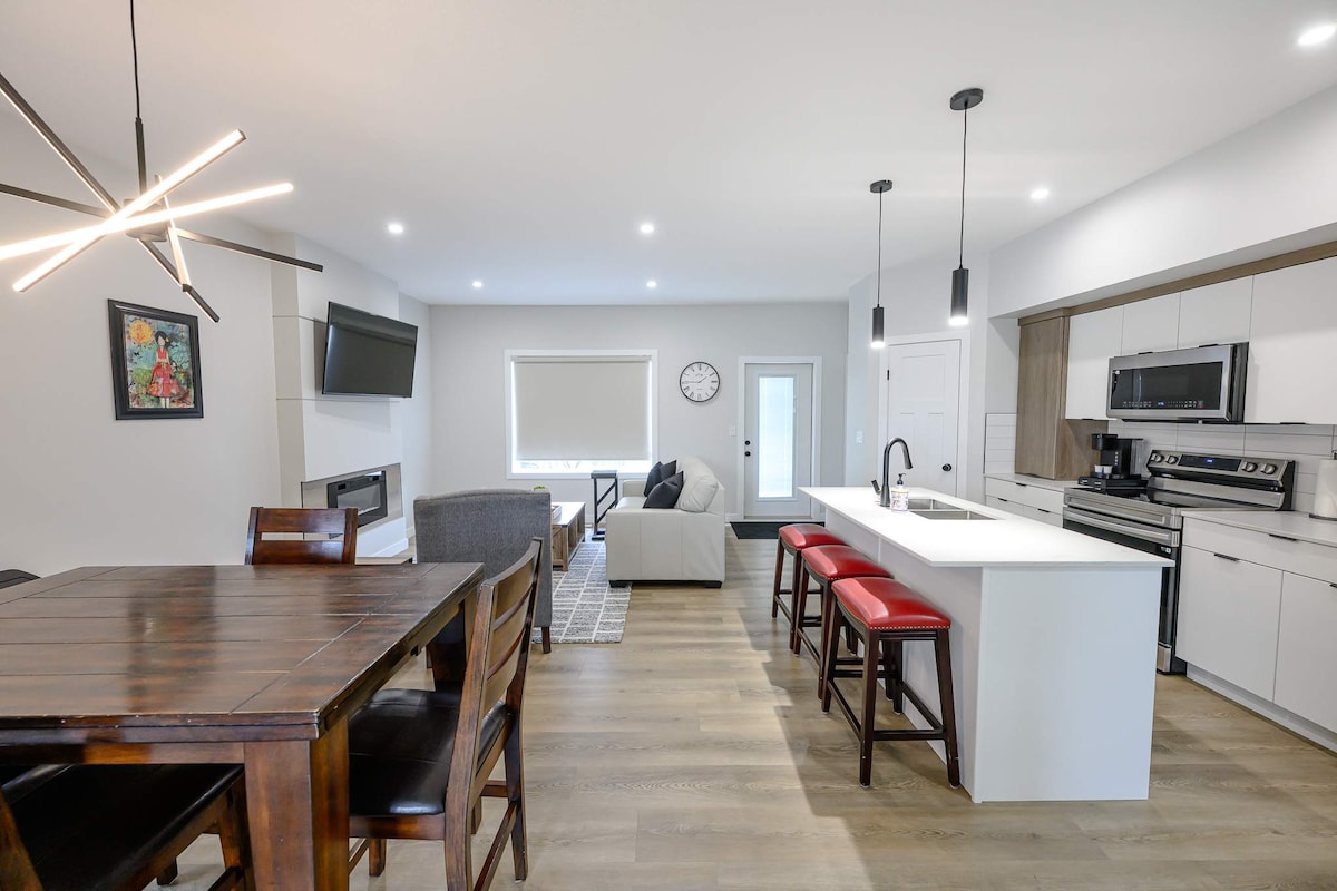 This place has a style all its own & luxurious,cozy accommodation.Whether you're looking for Romantic getaway or spend the time with your family/friends. Master bedroom includes an ensuite & king size bed,living room equipped with 60"QLED Smart tv & Netflix. kitchen with a island & 4 seater dining table. Two tier deck with hot tub & privacy fence. The backyard has a fire pit,wooden pergola and hanging chair & also fully fenced. Basement suite occupied by the host & have it's own entrance.