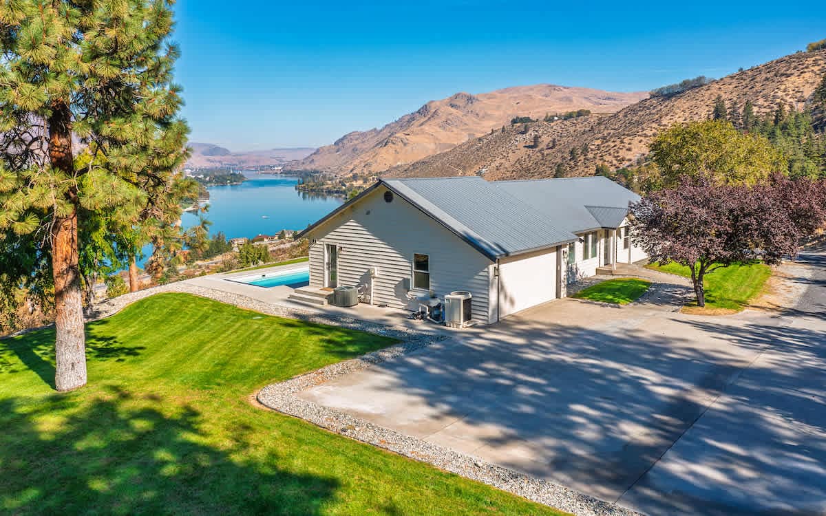 🌟The pool is open🌟Welcome to your home away from home near Soap Lake. Nestled within the picturesque Lakeview Golf Course, this exquisite 5-bedroom, 2-bath home offers an unforgettable retreat for families and groups seeking relaxation and outdoor adventure. Spacious, inviting and beautifully designed modern interior. Open interior, large windows with breathtaking views of the golf course, large doors to oversized deck and heated 16 x 32 pool w/ sun shelf in shallow end. Hot tub on patio.
