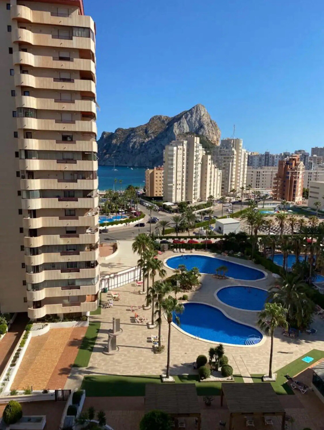 - Magnifica urbanización a 450 metros de la playa - 5 piscinas exteriores con jacuzzis y piscina climatizada, pistas de pádel, tenis, baloncesto y futbol, zona de barbacoa, plaza de parquin cubierto, zona infantil, gimnasios y saunas (1 euro por hora para el uso de la sauna) - Cuarto piso con amplia terraza con vistas a las montañas y piscinas en una zona alejada del ocio nocturno ideal para familias con niños - Cocina completa totalmente equipada y salón con sofá cama para dos personas.