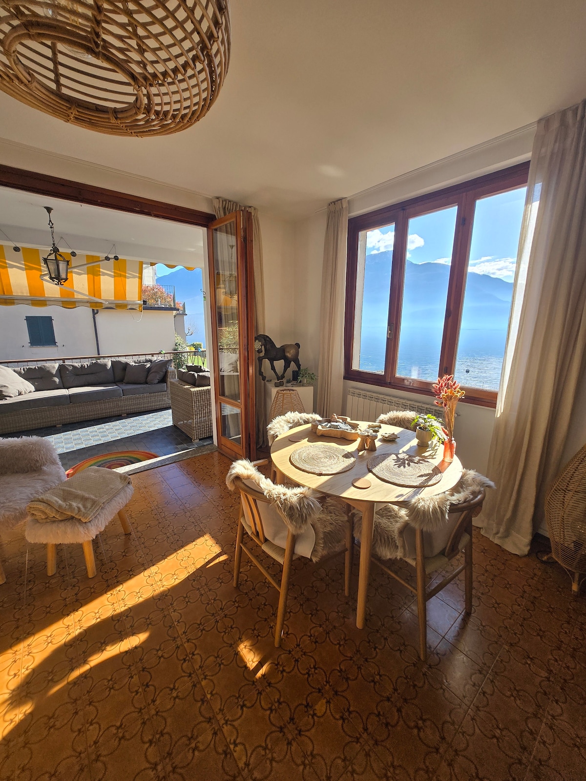 El apartamento, recientemente reformado, conserva toda la atmósfera del pasado. Está en una ubicación tranquila y ofrece la máxima privacidad. Tiene un gran aparcamiento privado y un hermoso jardín con un plátano centenario. Se puede llegar al centro del pueblo, a los diversos restaurantes, bares y a la playa, a pie en 15 minutos. Desde todos los rincones de la casa, desde todas sus ventanas, tienes una maravillosa vista de las montañas y el lago con mil matices de colores y luces que cambian constantemente.