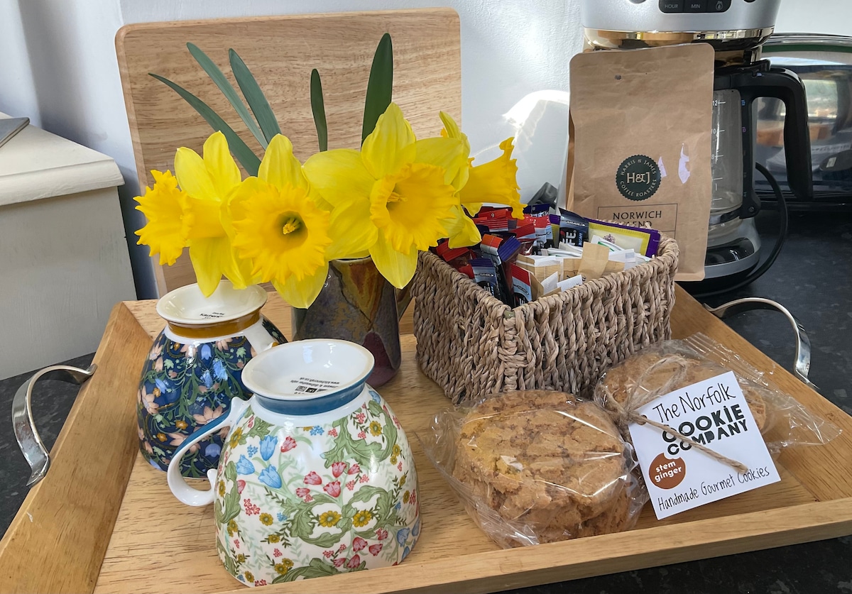 The Hideaway is a detached self contained annexe with its own garden and on drive parking space beside the property. It is located on the same spacious site as the owners house in the picturesque, south Norfolk village of Saxlingham Nethergate. The Hideaway consists of open plan living with a very comfortable king sized bed, dining/working area, kitchenette and separate bathroom with a shower and toilet. Outside is a private fully enclosed garden and lockable shed for bike storage.