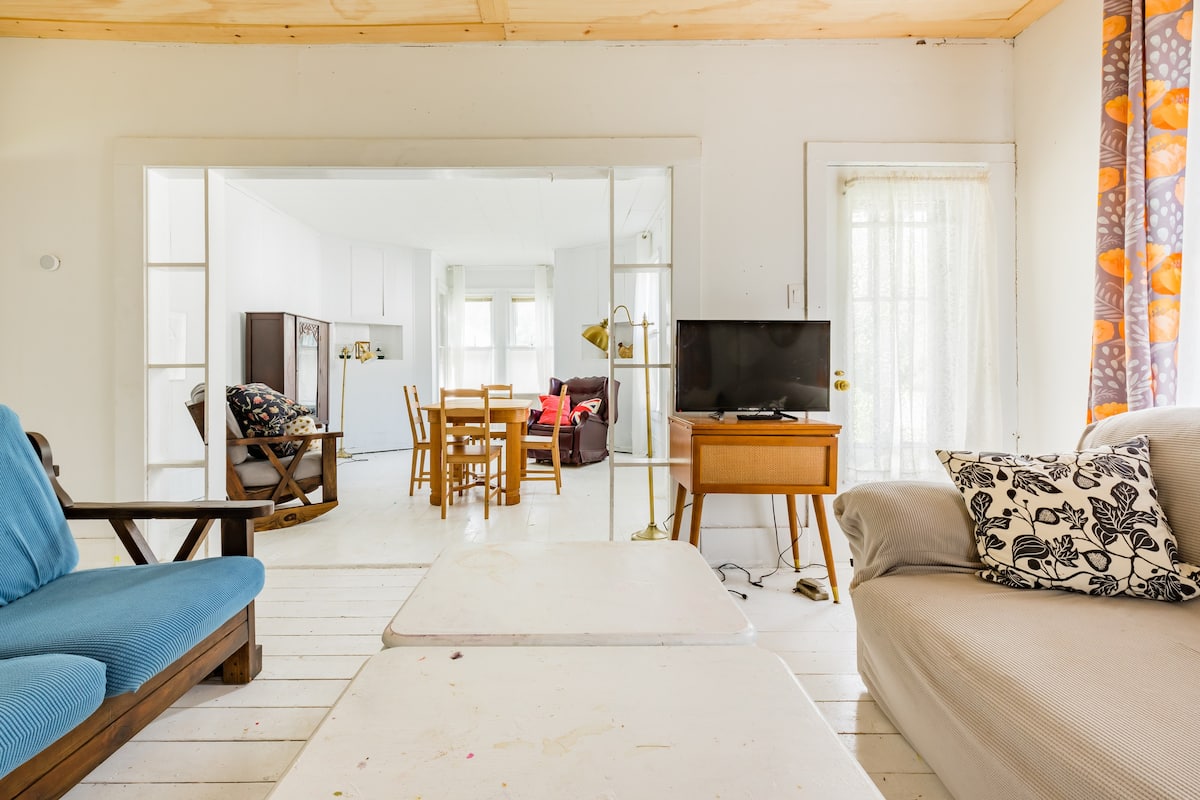 Nestled in the woods, our 3 bedroom cabin offers the perfect escape from the hustle and bustle of everyday life. The cozy interior features a warm, inviting atmosphere with all the amenities you need for a comfortable stay. The spacious living room is the perfect place to unwind after a long day of exploring the great outdoors, complete with a cozy fireplace and outdoor hot tub that offer stunning views of the surrounding landscape. Follow us on IG @thelittleredcabinny